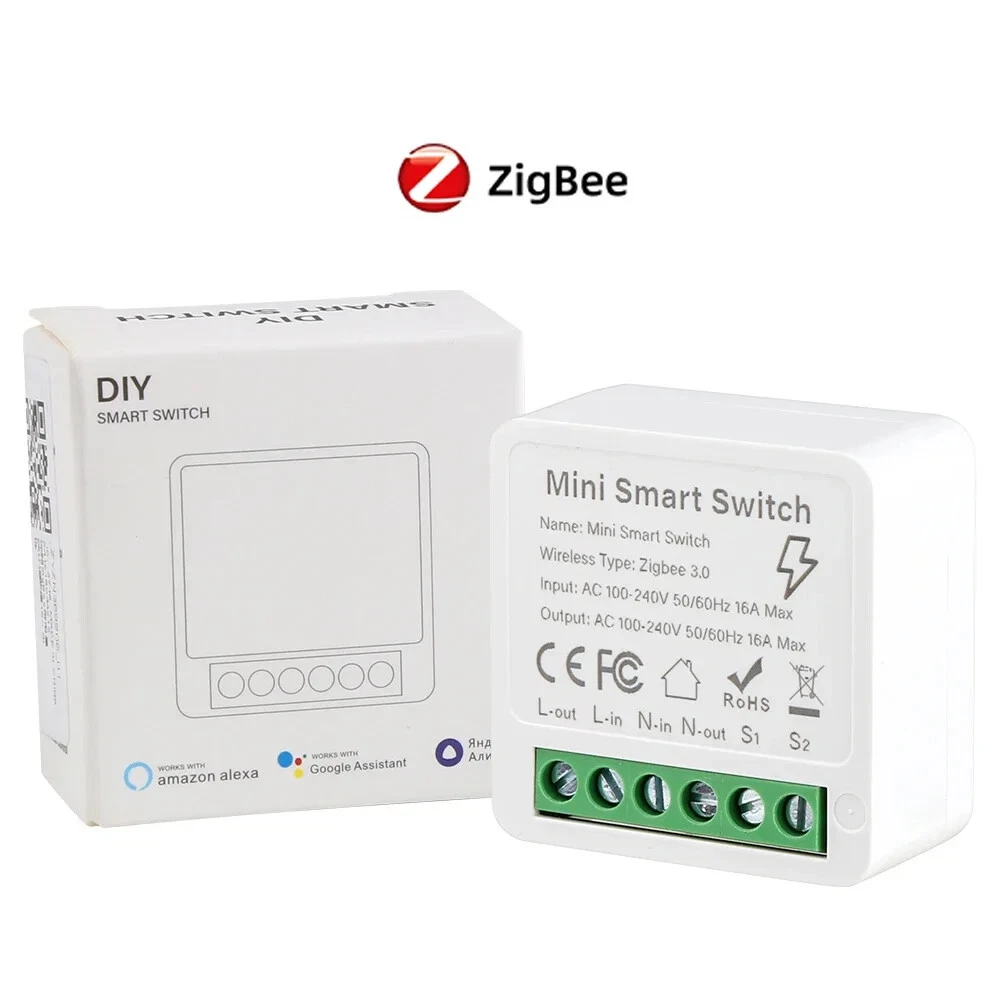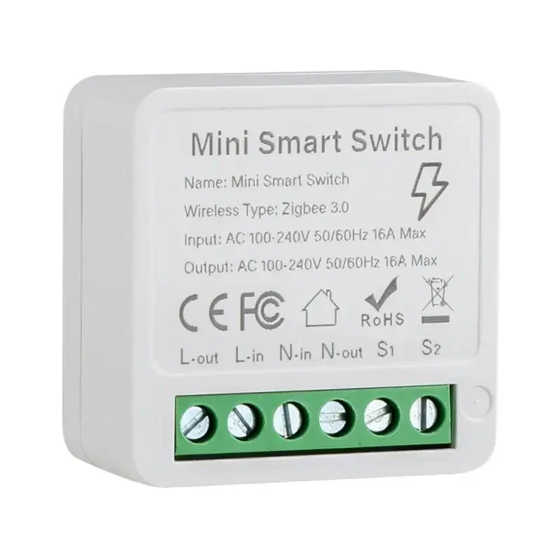 Tuya ZigBee Smart Switch Power Monitor 16A Smart Life WiFi DIY Module Timer Relay Automation Work With Alexa Yandex Alice Google Description: Output:AC 100-240V 50/60Hz Input:AC 100-240V 50/60Hz Wireless type:Zigbee 3.0 Material:PCV-0 Certified product:CE ROHS Maximum current:16A Power Monitor:Yes Specifications: 【External Switch Two-Way Control】 Zigbee Mini Switch has types of external switch , making it suitable for most physical switch control. Diy smart metering wall socket Diy metering button switches Diy metering rocker switches Diy metering 2-way control SPDT switches And all of them support power metering function 【Power Metering】 The switch detects voltage, current, and power values and counts the power consumption for you independently to allow for reasonable energy consumption control. 【With The Most Features】Remote, timing, voice control, smart scenes, and other functions are all available. Package Included: 1*Zigbee mini switch 1*Manual Notes: Note: This product does not support 2-way Switch. If you want to implement 2-way control, you can purchase two mini switches. There are multiple control associations on the APP, and you can use multi-control associations to achieve 2-way control.