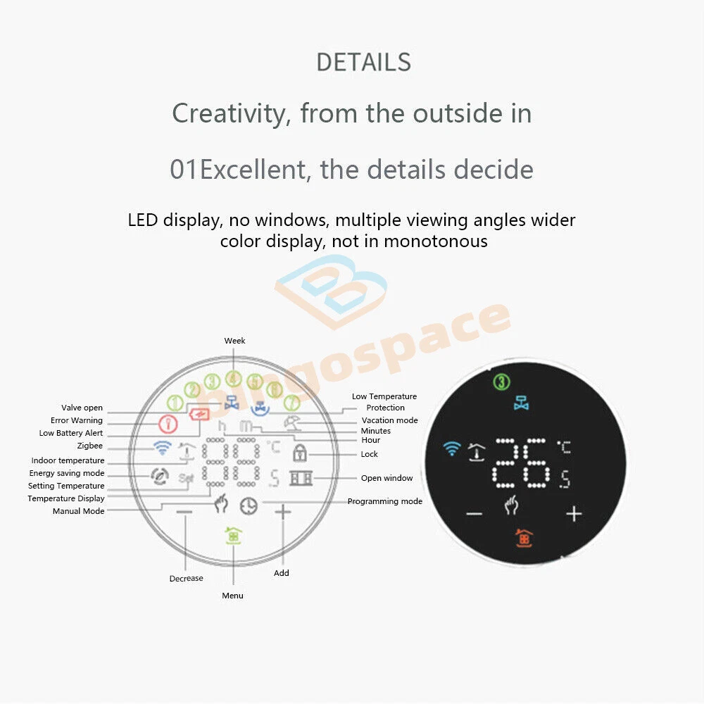 Home Payment Shipping About us Contact us Store Categories Store Categories Business, Office & Industrial Home, Furniture & DIY Computers/Tablets & Networking Sound & Vision Consumer Electronics Other Details Features 1.Compact product, low power consumption, long standby low battery reminder 2.LED high-definition display, wide field of vision, colorful display 3. Split mini design, easy to disassemble, more convenient to replace the battery 4. Support cell phone App remote control, realize intelligent life 5. Compatible with the adapter, can make the device applied to air conditioning, heating temperature controller, suitable for a variety of public home occasions Parameter Maximum stroke: 3mm Power supply: 3V (2xAA batteries) Accuracy: Std. 0.5°C Setting Temperature: Range: 5-45°C Display Temperature: Range: 0~70°C Ambient Cadence: 0~45°C Ambient Humidity: 5%~95%RH (non-condensing) Storage Temperature: -5~45°C Timing Error: < 1% Protection grade: IP20 Keys: capacitive touch keys List Touch Module*1 Spare parts kit*1 English manual *1 Shipping Policy Payment Method Returns Policy Shipping Policy Payment Method Returns Policy Home Payment Shipping About us Contact us Copyright©2018 datacaciques Top & Fast Shipping! Get The Right At The Right Price! Doodle ZigBee Intelligent Thermostat Floor Heating Temperature Control Valve DESCRIPTION Features 1.Compact product, low power consumption, long standby low battery reminder 2.LED high-definition display, wide field of vision, colorful display 3. Split mini design, easy to disassemble, more convenient to replace the battery 4. Support cell phone App remote control, realize intelligent life 5. Compatible with the adapter, can make the device applied to air conditioning, heating temperature controller, suitable for a variety of public home occasions Parameter Maximum stroke: 3mm Power supply: 3V (2xAA batteries) Accuracy: Std. 0.5°C Setting Temperature: Range: 5-45°C Display Temperature: Range: 0~70°C Ambient Cadence: 0~45°C Ambient Humidity: 5%~95%RH (non-condensing) Storage Temperature: -5~45°C Timing Error: < 1% Protection grade: IP20 Keys: capacitive touch keys List Touch Module*1 Spare parts kit*1 English manual *1 SHIPPING Please Make sure your Ebay Address is 100% right. We maintain high standards of excellence and strive for 100% customer satisfaction! Feedback is very important to us. We request that you keep in touch with us immediately BEFORE you give us neutral or negative feedback, so that we can satisfactorily address your concerns. PAYMENT Please leave note for your special request (e.g. Colors or Size) in PayPal when you pay the order. RETURN Please contact us first if you have any problems/questions/concerns. We will be happy to resolve any issues you may have in a cordial and friendly manner. ---------------------------------------------©Copyright Gogaviinse. All Rights Reserved.--------------------------------------