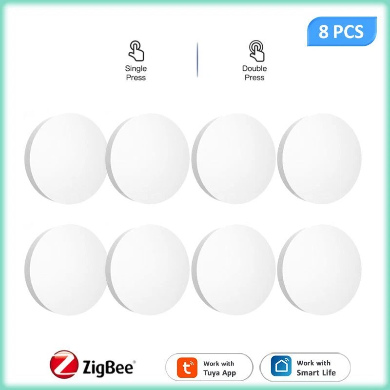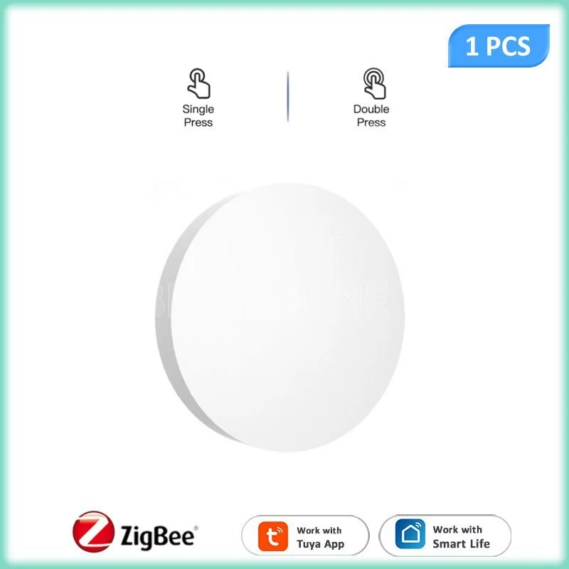 Tuya ZigBee Smart Push Button Scene Switch Wireless Remote Control on Off Key Controller Multi-scene Linkage Smart Switches Notes: Need to be used with zigbee gateway. Control tuya smart's devices. Description: 1. 【Custom/Key Operation Scene mode】 Smart scene button, matching the smart scene, one key to open the smart scene. You can freely set scenes or lights on TUYA Smart. In the scene mode, the button respectively support single click, double click scene requirements. You don't need to click the scene mode on your phone, just click the ZigBee smart remote control to open the smart scene. For example, movie mode: turn on the TV, turn off the lights in the living room, draw the curtains, turn on the TV ambient light, and turn on the audio. Simply click the remote control button to do it easily. 2. 【Can control any smart device (provided by TUYA)】 Control lights, electronics and small appliances from anywhere. 3. 【Ultra-low energy consumption, battery-powered】 the battery life can be up to 1 years, without frequent battery replacement. No wiring required. 4. 【No need to install】 Can be hung on the wall, can also be placed on the table, and you can get it at your fingertips! Specifications: Power supply: Battery CR2032 3V DC (the battery is not included in the package) Communication: Zigbee 3.0 Control distance: 25m open area Dimensions: 50mmx50mm Operating temperature:-10°C-45°C Working Humidity: <90% RH Life of battery: 1 years (General use) Package Included: 1*scene botton 1*manual