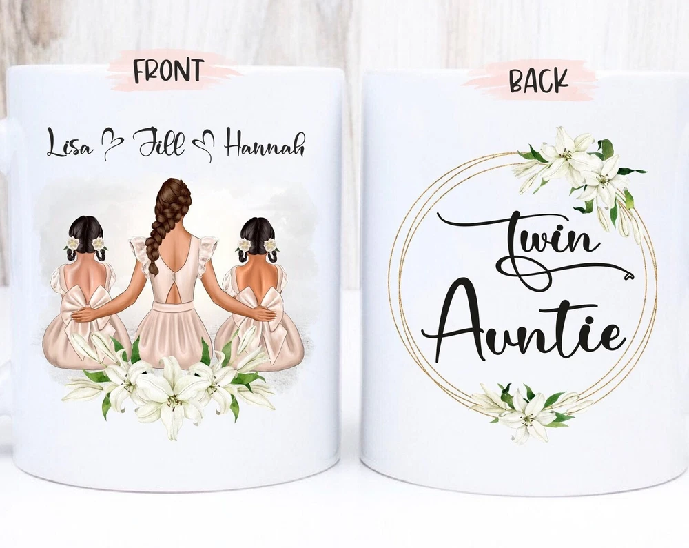 Twin Auntie Mug Twin Aunt Gift Aunt Mug Aunt Gift Aunt Of Twins Mug Aunt Of Product Details.. This high quality 11oz. ceramic white mug has a premium hard coat that provides crisp and vibrant color reproduction sure to last for years. Perfect for all hot & cold beverages. The highest quality printing possible is used. It will never fade no matter how many times you wash it. Material: 100% Ceramic. Print both sides. Dishwasher and Microwave Safe. High Gloss + Premium White Finish. Printed in the U.S.A. Personalized & Custom. We support personalized and custom mug to add custom, when placing an order, you can add notes to the "order note" in shipping address section. Also you can contact us directly via message. Shipping Info. Ready to ship in 1 to 2 business days, All products are made-to-order and proudly printed in the United States. Shipped by USPS and DHL, You will receive your order in 5-7 days. Replace & Refund. All products are defective during shipping broken, chipped will be replaced free of charge. You are not satisfied with the product, we will refund 100% money to you. If any other issues arise, please do not hesitate to message, we would be more than happy to assist you.