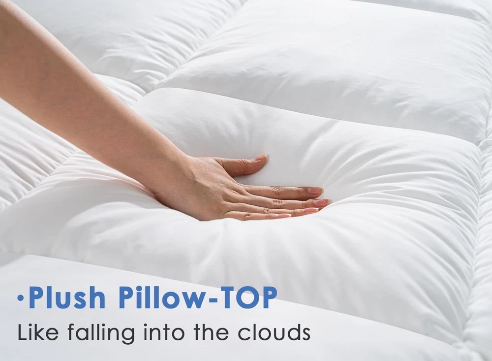 Color Classic - Square White Size Twin Fabric Type Polyester Special Feature Pillow Top About this item Polyester Soft Pillow Top: Indulge in the luxurious softness of our pillow top mattress topper. The soft and fluffy fill adds a cloud-like comfort to your bed, transforming even the firmest mattress into a plush haven. Experience a truly restful sleep with the extra layer of coziness our topper provides. Pressure-Relieving : Filled with high-density down alternative, our mattress topper is designed to relieve body pressure and provide exceptional support. Enjoy the benefits of a restful sleep as the topper conforms to your body, alleviating pressure points in areas such as shoulders, back, and hips. Invest in your well-being with our pressure-relieving mattress topper. Affordable Enhancement: Upgrade your sleeping experience without breaking the bank. Our mattress topper offers an affordable and easy solution to revitalize a hardened mattress. Instead of investing in an entirely new mattress, enjoy the cost-effective and luxury of our topper for an instant improvement in comfort. All-Season Breathability: Enjoy optimal comfort throughout the year with our mattress topper's excellent breathability. Crafted with materials that promote air circulation, it keeps you cool in the summer and cozy in the winter. Enjoy restful sleep in any season without overheating, making it the perfect addition to your bedding. Customer Satisfaction:Please leave it for 48 hours first or tumble dry on low heat for 15 mins. Color Classic - Square White Size Twin Fabric Type Polyester Special Feature Pillow Top Closure Type Pull On Product Care Instructions Dry Clean Only Water Resistance Level Not Water Resistant Age Range (Description) Adult Material Polyester Thread Count 400 Model Name Marine Moon Twin Mattress Topper UPC 631145950501 Product Dimensions 74 x 39 x 18 inches