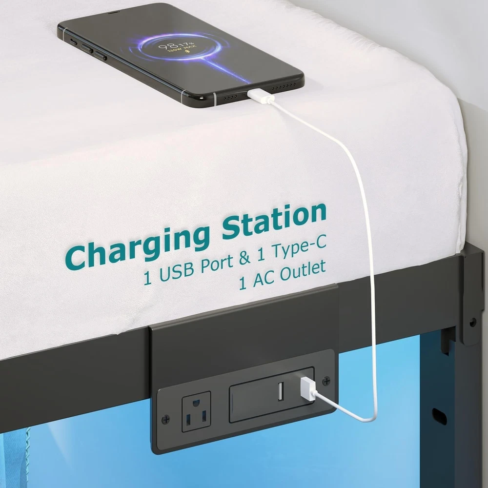 Twin Size Bed Frame w/LED Light & Charging Station Heavy Duty Metal Platform Bed ‹ › ‹ › ‹ › ‹ › ‹ › ‹ › ‹ › ‹ › Twin Size Bed Frame with LED Light & Charging Station Transform your bedroom into a sanctuary of elegance and convenience with our exquisite twin size bed frame. Features: Built-in Charging Station: Comes equipped with 1 standard AC outlet and 2 USB ports (1 Type-A + 1 Type-C), paired with a 6-foot power cord for seamless charging of your devices right beside you. LED Lighting: Set the mood in your room with app or remote controlled LED lights. Adjust brightness, color, and dynamic modes, including music-sync rhythm effects, to elevate your ambiance. Noiseless Construction: Engineered with reinforced metal slats to ensure rock-solid stability without any squeaks or creaks, providing the ultimate support without a box spring. Easy Assembly: Enjoy a hassle-free setup with our integrated design and pre-labeled parts, allowing you to assemble your new bed frame in under 30 minutes. Spacious Under-Bed Storage: Maximize your bedroom space with ample clearance for storing bins, luggage, or spare bedding, ensuring your space remains tidy and organized. Benefits: Elevate the aesthetics of your bedroom with stylish LED lighting. Keep your devices charged and within , minimizing clutter. Experience unwavering stability and comfort with a heavy-duty construction. Effortlessly assemble your bed frame with straightforward instructions. Utilize under-bed space for a tidy living environment. Why Choose Our Twin Size Bed Frame? This bed frame is not merely a piece of furniture; it is a transformative addition to your living space, offering unparalleled style and practicality. Embrace the combination of modern technology and thoughtful design that enhances your lifestyle and elevates your bedroom environment. Don't settle for anything less than the best. Invest in comfort, elegance, and innovation. Order your Twin Size Bed Frame with LED Light & Charging Station today! Shipping Free & Fast Shipping - We offer free shipping to most of the USA with a normal delivery time of 3-7 days. However, due to the current situation, additional delivery time (up to 3 weeks) may be required for some items. Alternative Carriers - We may use alternative carriers (e.g. USPS, FedEx, UPS, etc.) to ensure your package arrives safely and on time. Due to the use of multiple carriers, we are unable to provide a tracking number automatically. Handling Time - Orders are processed and shipped within 1-2 business days of receiving cleared payment. Shipping Restrictions - Shipping to Alaska, Hawaii, Puerto Rico, Guam, and other US territories may incur shipping charges or delivery restrictions. Please contact us before ordering, or your order can be refunded/cancelled. State Restrictions - There may be restrictions based on your state of purchase. For example, certain items may not be shipped to California due to state regulations. Contact for Tracking Updates - If you require tracking updates or have any concerns about the delivery of your order, please feel free to contact us, and we will be happy to assist you. Return 30-Day Hassle-Free Returns - We want you to be completely satisfied with your purchase. If you are not, you can return the item within 30 days of receiving it for a full refund or exchange. Easy Return Process - To start a return, simply contact us and we will provide you with a prepaid return shipping label and detailed instructions. Restocking Fee - There are no restocking fees for returns. However, the buyer is responsible for return shipping costs if the return is not due to a seller's error. Refund Processing Time - Refunds will be processed within 5 business days of receiving the returned item in its condition. Payment We accept all major credit cards, PayPal, and Apple Pay for your convenience. Your payment information is secure and encrypted to ensure a safe and seamless transaction. Please complete your payment within 3 days of purchase to avoid any delays in shipping. Feedback Your feedback is extremely important to us. We strive to provide the best products and customer service possible. If you are satisfied with your purchase, please take a moment to leave us a positive review. If you have any concerns or issues with your order, please contact us before leaving negative feedback. We are committed to resolving any problems and ensuring your satisfaction. Contact Us If you have any questions or concerns, please feel free to out to our customer support team. You can contact us through the eBay messaging system. We are available Monday to Friday, 9:00 am to 5:00 pm EST, and we will do our best to respond to your inquiry within 24 hours. Buy it now and enjoy a pleasant shopping experience! UPC: 7429376528216 Unit Quantity: 1 Number of Items in Set: 1 Assembly Status: Yes Weight Capacity: 2000 pounds Mount Type: Free Standing Indoor/Outdoor: Indoor Voltage: 125V Product: Metal Bed Frame Set Includes: charging station Weight: 10.34 kilograms Compatible Mattress Size: Twin Frame Material: Metal Features: LED Light,Charging Station,Fade Resistant,Squeak Resistant MPN: HCST07221 Department: Adults Type: Metal Bed Frame Color: Black Finish: Powder Coated Item Height: 43.5 in Item Length: 82.5 in Style: Twin Shape: Rectangular Room: Bedroom Item Width: 39 in Item Weight: 10.34 kilograms .