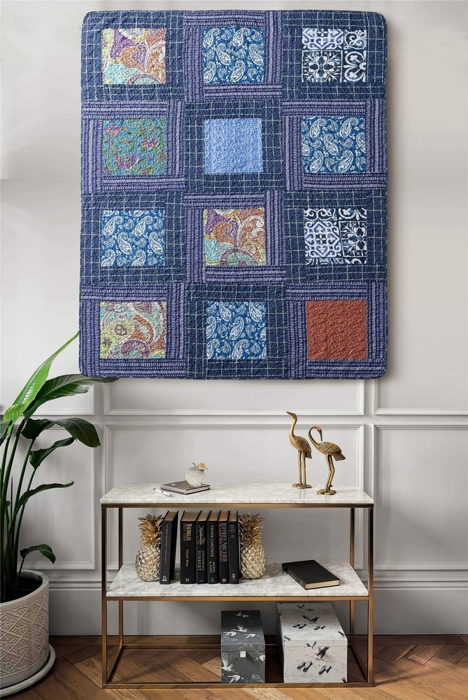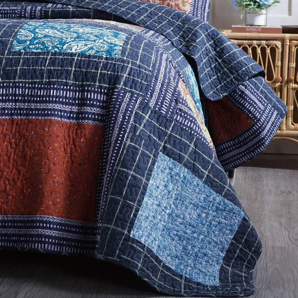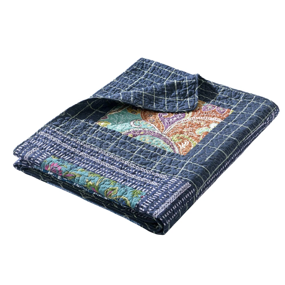 Original Cotton Patchwork Quilt Twin Size Quilted Throw Blankets for Couch Sofa Reversible Vintage Floral Paisley Navy Bedspread Coverlet Lightweight Bed Throws for Bed Home Bedroom Decor 💧PREMIUM MATERIAL - Cover: 100% cotton. Filler: 100% cotton. Using soft and breathable cotton, make the quilt blanket more durable and comfortable through all the season, yet lightweight. 💧SHABBY CHIC STYLE - Vintage/old fashioned floral print and gorgeous paisley quilt with unique patchwork crafts. Super soft cotton to create a lightweight, durable quilt blanket for year-round comforts. It is lightweight enough to carry from room to room, but heavy enough to keep you warm and comfortable. 💧QUILT SIZE - 59’’x79’’ (150 x 200 cm), perfect to be used as bed throws, quilted blanket for couch, sofa, chair, swing and daybed, or just as a home decoration. 💧UNIQUE DESIGN - Practical reversible design, both sides can be used individually. The beautiful colors and embroidered stitching is perfect to add lovely texture to your home. 💧CARE INSTRUCTION - Machine wash in cold water, gentle cycle, tumble dry low or sun dry. No Chlorine bleach or any additives. 💧【Note】Due to the design of vacuum packaging, the twin size quilt will have wrinkles, which can be restored by leaving it for a while or washing it.