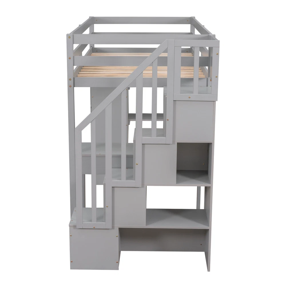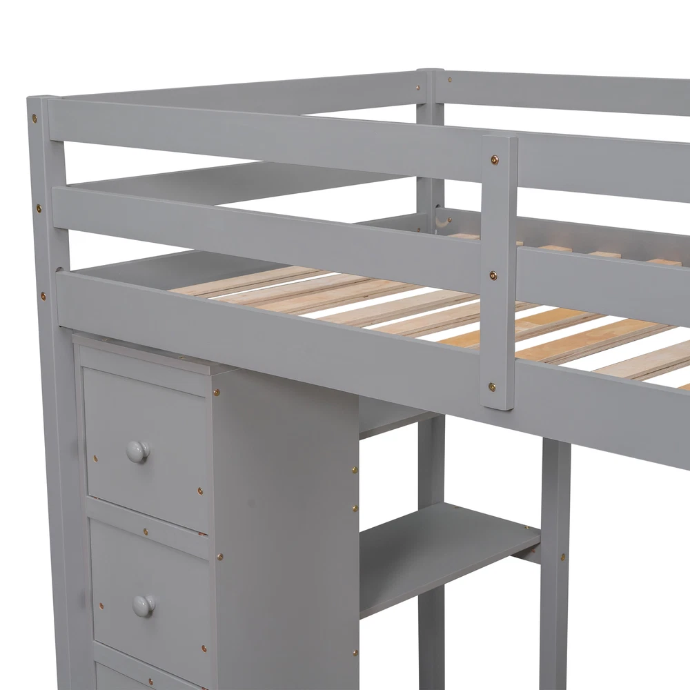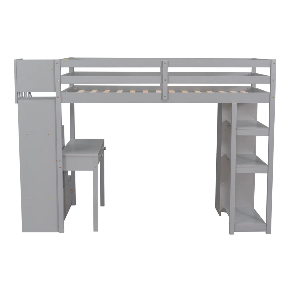 Twin size Loft Bed with Storage Drawers ,Desk and Stairs, Wooden Loft Bed with Shelves - Gray If your family needs a functional bed, then this loft bed will be a good choice for you, it will save you space and maximize functionality with multiple functions. This is the perfect study area while also having room to store your belongings. Beds with full rails ensure your sleep is safe. You don't have to worry about its quality. The bed has an elegant design that will fit nicely into your bedroom. Weight & Dimensions Overall Product Dimension 94.4"L x 41.8"W x 65"H Detail Product Dimension Please refer to the Size image Number of Package 3 Package Dimension Please refer to the Specification Overall Product Weight 248LBS Package Weight Please r... Twin size Loft Bed with Storage Drawers ,Desk and Stairs, Wooden Loft Bed with Shelves - Gray Twin size Loft Bed with Storage Drawers ,Desk and Stairs, Wooden Loft Bed with Shelves - Gray If your family needs a functional bed, then this loft bed will be a good choice for you, it will save you space and maximize functionality with multiple functions. This is the perfect study area while also having room to store your belongings. Beds with full rails ensure your sleep is safe. You don't have to worry about its quality. The bed has an elegant design that will fit nicely into your bedroom. Weight & Dimensions Overall Product Dimension 94.4"L x 41.8"W x 65"H Detail Product Dimension Please refer to the Size image Number of Package 3 Package Dimension Please refer to the Specification Overall Product Weight 248LBS Package Weight Please refer to the Specification Weight Capacity 300LBS Recommended Mattress Thickness 6" Recommended Age > 6 years old Specifications Product Type Loft Bed Size Twin Color Espresso/White/Gray Product material Plywood+MDF+Pinewood Number of slats 14 Level of Assembly Partial assembly Box Spring Required No Mattress Included No Estimated Time to Assemble 60 mins Suggested Number of People 2 Additional Tools Required All Tools Included Avoid power tools Yes Country of Origin Vietnam Notes Manual measurement has been used,there may be some reasonable error.Manual measurement has been used,there may be some reasonable error. v [Maximized space] It takes advantage of the floor space, and allows for a cozy rest, extra work and play space and makes a great piece of furniture for growing families.4 storage drawers, 1 desk as well as shelves, storage stairs, provide a lot of storage space v [Multifunctional bed] The space under the Twin loft bed is a great place for you to read, do homework or play, creating your own world of exploration. The storage space is strong, desk for study or work, and the stairs protect the safety of children. v [Solid Construction] This muti-functional loft bed is crafted from a solid pine wood frame, with commercial grade MDF board for quality control and durability. Guardrails are solidly attached for added safety. v [Health and Comfort] No box spring required, and without needing a foundation. The wood frame is sturdy and comes with slats for extra support and ensures air moves freely around your mattress to keep it fresh for years to come. v [Dimensions] : 94.4"L x 41.8"W x 65"H. Mattress not included. Some assembly is required, although we have provided clear instructions and tools. Item Specifics Brand Unbranded Type Bed frame Color Gray Frame Material Solid Wood Payment [ Policy: The above tab label style can be modified in left Basic - Footer Policy section. And this area is the details contents of your policies. You can add a banner for this policy as header and add text descriptions here. The text descriptions can be different Font Size, Font Color, Style and even graphics and icons are also accepted. ] Shipping [ Shipping: This is the contents of your Shipping. You can add a banner for this Shipping as header and add text descriptions here. The text descriptions can be different Font Size, Font Color, Style and even graphics and icons are also accepted. ] Returns [ Return: This is the contents of your Return. You can add a banner for this Return as header and add text descriptions here. The text descriptions can be different Font Size, Font Color, Style and even graphics and icons are also accepted. ] Contact Us [ Contact Us: This is the contents of your Contact Us. You can add a banner for this Contact Us as header and add text descriptions here. The text descriptions can be different Font Size, Font Color, Style and even graphics and icons are also accepted. ] DESCRIPTION PAYMENT SHIPPING RETURN POLICY CONTACT US Twin size Loft Bed with Storage Drawers ,Desk and Stairs, Wooden Loft Bed with Shelves - Gray Twin size Loft Bed with Storage Drawers ,Desk and Stairs, Wooden Loft Bed with Shelves - Gray If your family needs a functional bed, then this loft bed will be a good choice for you, it will save you space and maximize functionality with multiple functions. This is the perfect study area while also having room to store your belongings. Beds with full rails ensure your sleep is safe. You don't have to worry about its quality. The bed has an elegant design that will fit nicely into your bedroom. Weight & Dimensions Overall Product Dimension 94.4"L x 41.8"W x 65"H Detail Product Dimension Please refer to the Size image Number of Package 3 Package Dimension Please refer to the Specification Overall Product Weight 248LBS Package Weight Please refer to the Specification Weight Capacity 300LBS Recommended Mattress Thickness 6" Recommended Age > 6 years old Specifications Product Type Loft Bed Size Twin Color Espresso/White/Gray Product material Plywood+MDF+Pinewood Number of slats 14 Level of Assembly Partial assembly Box Spring Required No Mattress Included No Estimated Time to Assemble 60 mins Suggested Number of People 2 Additional Tools Required All Tools Included Avoid power tools Yes Country of Origin Vietnam Notes Manual measurement has been used,there may be some reasonable error.Manual measureme
