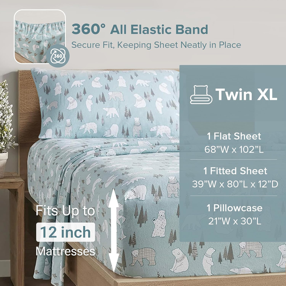 Fast Shipping Great Customer Support Satisfaction Guaranteed DESCRIPTION Shipping Shipping Shipping All domestic packages are shipped for Free (Unless other shipping method was selected during the checkout) Most items ship and arrive much sooner than the estimate delivery date. Usually within 2-3 days from payment. However, we have longer estimates to compensate for the occasional delay or supply chain breakdown. We do not accept P.O. BOXES - PLEASE PROVIDE A PHYSICAL ADDRESS Return Return Return In the event that you would like to return your purchase, we allow returns that are processed within the defined return date (the return date is to be found in the return policy/shipping and handling section) Please contact us for a return authorization and the return shipping address. Payment Payment Payment PayPal is our preferred method of payments it's the quickest, easiest and most secure way to pay for your goods or services online. PayPal offers buyer and seller protection should there be a problem. If you do not have a PayPal account, to get started and buy your first item with us is very easy. Simply click on the 'Buy It Now' button and follow the eBay checkout steps. Select PayPal as the payment method you then will be given the chance to enter your card details in to PayPal's secure checkout in order to pay for your order. Once the payment has been made, you will then be given the opportunity to make your own PayPal account to make paying for your items in the future very easy. Should there be a problem with payment please do let us know. Feedback Feedback Feedback Customer satisfaction is very important to us. If you have any problem with your order,please contact us and we will do our best to make you satisfied, please do not leave a negative feedback before we resolve your problem. We guarantee that your issue will be solved quickly. As long as you are happy with your purchase of , please leave us a positive feedback. Your feedback is very important to us it affects our search placement on eBay. We will leave a positive feedback for you in return automatically once we receive your feedback. Contact Us Contact Us Contact Us If you have any queries, please contact us via ebay. We usually respond within 24 hours on weekdays. Thank you for visiting our ebay store! EASY CARE: Do not Bleach. Machine Wash Cold, Tumble Dry Low. Lint is a natural by-product from the brushing process to create the soft and cuddly flannel fabric. To help settle the fiber, you may add a half cup of vinegar to the washing machine's wash cycle in place of detergent. After the first few washes, shedding should subside. Novelty printed cotton flannel sheet set will bring the joy and festive spirit in your home and right to your bedroom The flannel is manufactured in an OEKO-TEX Standard 100 certified factory, which ensures that the product has no harmful substance or chemicals. Set includes: 1 Flat Sheet: 68"W x 102"L, 1 Pillowcase: 21"W x 30"L, 1 Fitted Sheet: 39"W x 80"L + 12"D. Twin XL also fits for Split King bed. EASY CARE - Machine wash cold on gentle/delicate cycle, tumble dry on low heat. No bleach. Recommended to use 1/2 cup of white distilled vinegar for the first time washing to reduce lint and fuzz. Cozy bed starts with a comfy sheet set. Our Comfort Spaces cotton flannel sheet is soft and breathable and offers warmer property to make you feel extra cozy at night. The sheet set features adorable novelty prints that will brighten up your room. It also comes with OEKO-TEX Standard 100 certification ensuring no harmful substance or chemical is used and striving for quality comfort and wellness. It comes in 5 different sizes for you to choose from and it’s also conveniently machine washable. Twin XL Cotton Flannel Deep Pocket Sheets Set Blue Polar Bears 3 Piece Click here to see description Fast Shipping Great Customer Support Satisfaction Guaranteed DESCRIPTION Shipping All domestic packages are shipped for Free (Unless other shipping method was selected during the checkout) We ship within two business days of payment, usually sooner Standard FREE shipping takes between 3-5 business days Expedited shipping takes between 2-3 business days Overnight shipping takes between 1-2 business days We do not accept P.O. BOXES - PLEASE PROVIDE A PHYSICAL ADDRESS We Ship Globally using ebay's GSP, the item is sent to a logistic center in KY and shipped from there to the rest of the world. International customers are responsible for all duties and taxes Contact your local authority for questions related to the amount of duties or taxes you will be responsible for Return In the event that you would like to return your purchase, we allow returns that are processed within the defined return date (the return date is to be found in the return policy/shipping and handling section) Please contact us for a return authorization and the return shipping address. Please contact us for a Return Merchandise Authorization (RMA) number. We advise you to use a reputable carrier service when returning your goods. Please pack all returns appropriately. We ship globally Via eBay's global shipping program (GSP). Thus we don't cover returns for items shipped globally. Buyers returning such items will be refunded ONLY for the item's cost and not for the shipping. please check the Voltage information and make sure it matches the one in your country. In case it's not stated in the description, do ask us. Payment PayPal is our preferred method of payments it's the quickest, easiest and most secure way to pay for your goods or services online. PayPal offers buyer and seller protection should there be a problem. If you do not have a PayPal account, to get started and buy your first item with us is very easy. Simply click on the 'Buy It Now' button and follow the eBay checkout steps. Select PayPal as the payment method you then will be given the chance to enter your card details in to PayPal's secure checkout in order to pay for your order. Once
