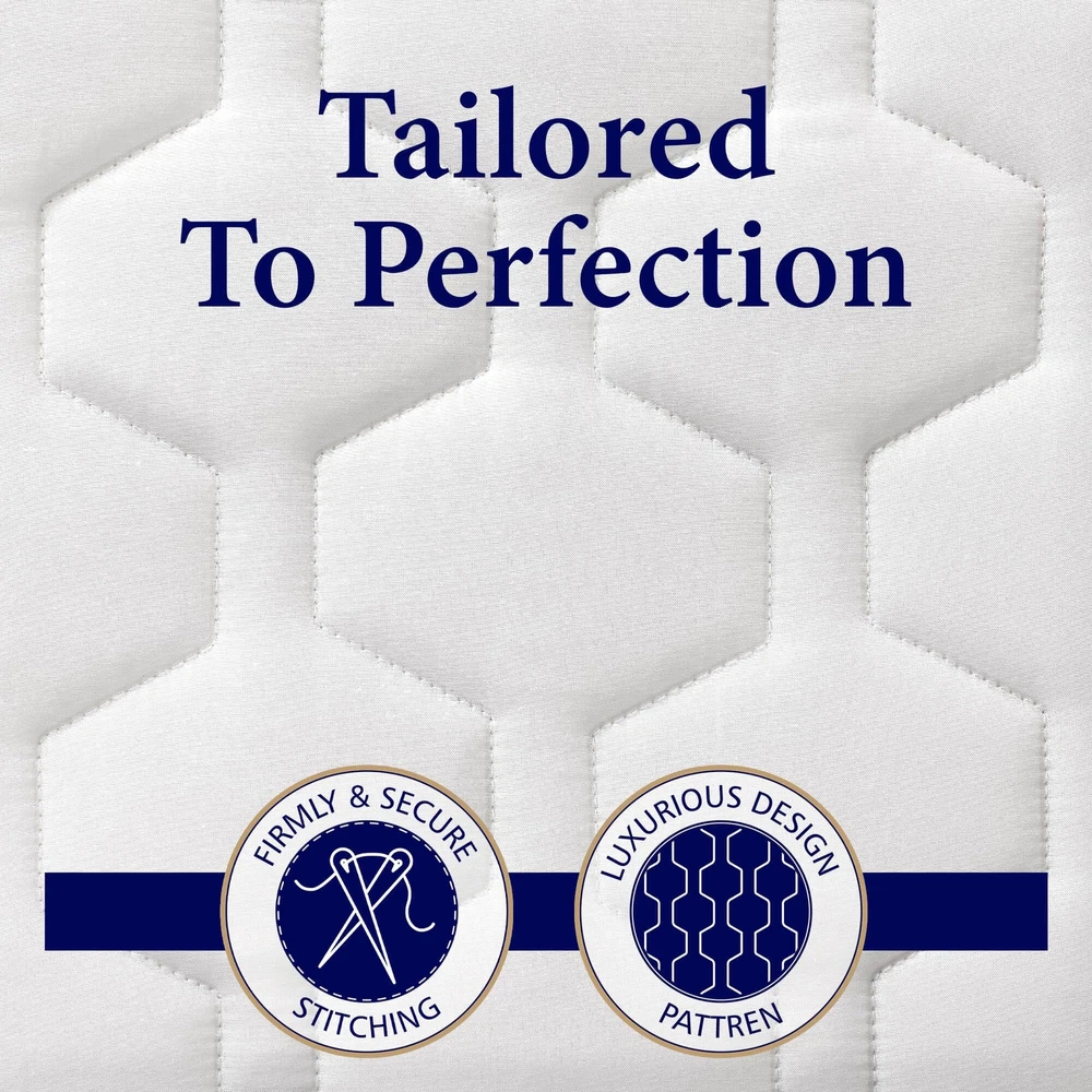 Fantastic Protection: Our top quality mattress cover effectively Protects your mattress from dirt, dust and dander. This mattress pad is surely a grand one! Hypoallergenic, Comfortable to sleep on. Without any Plastic Noise When Moving Around. Fits Perfectly Well, Deep Pockets, Came In a Clear Plastic Carrying Case That Will Be Great for Storage and Travel. The nice stitching pattern gives it that fine touch. Keeps everything together and in place, It will not slip off of your bed... All Sizes: Twin: 39x75x10”. The 12" skirt will stretch to fit a mattress up to 14" deep! Twin XL: 39x80x10”. The 16" skirt will stretch to fit a mattress up to 14" deep! Full: 54x75x12". The 12" skirt will stretch to fit mattress up to 16" deep! Full XL: 54x80x12”. The 16" skirt will stretch to fit mattress up to 16" deep Queen: 60x80x14". The 16" skirt will stretch to fit a mattress up to 18" deep! King: 78"x80x14". The 15" skirt will stretch to fit a mattress up to 18" deep! Cal King: 72 x 84x14". The 16" skirt will stretch to fit a mattress up to 18" deep! Style: Quilted, Fitted. Top fabric: 50% cotton/50% polyester. Back: 100% polyester. Skirt: 100% polyester. Fill: 100% polyester. MATTRESS PROTECTOR: Mattress Pad will not only restore your mattress’ look to a beautiful appearance, but it will protect your current mattress from any further damage. By acting as a protective barrier, mattress pad helps shield your mattress from spills, stains, and general wear and tear, effectively prolonging its lifespan. SOFT & SMOOTH POLY-COTTON MATERIAL: mattress pad combines two of the best materials for bedding; cotton and polyester. The Mattress pad has the softness and smoothness that polyester offers and the comfort and coolness is delivered by the high quality cotton we material. HYPOALLERGENIC: Made from high quality cotton and polyester has been designed from hypoallergenic materials to ensure a comfortable and easy sleep. DURABLE AND LONG LASTING: Mattress Cover is made from high quality material ensuring it will not fade or fall apart even after years of use. QUICK AND EASY TO FIT ON BED: Simply slip our mattress pad over your mattress, secure it with the elasticized skirt, and enjoy instant comfort and protection.