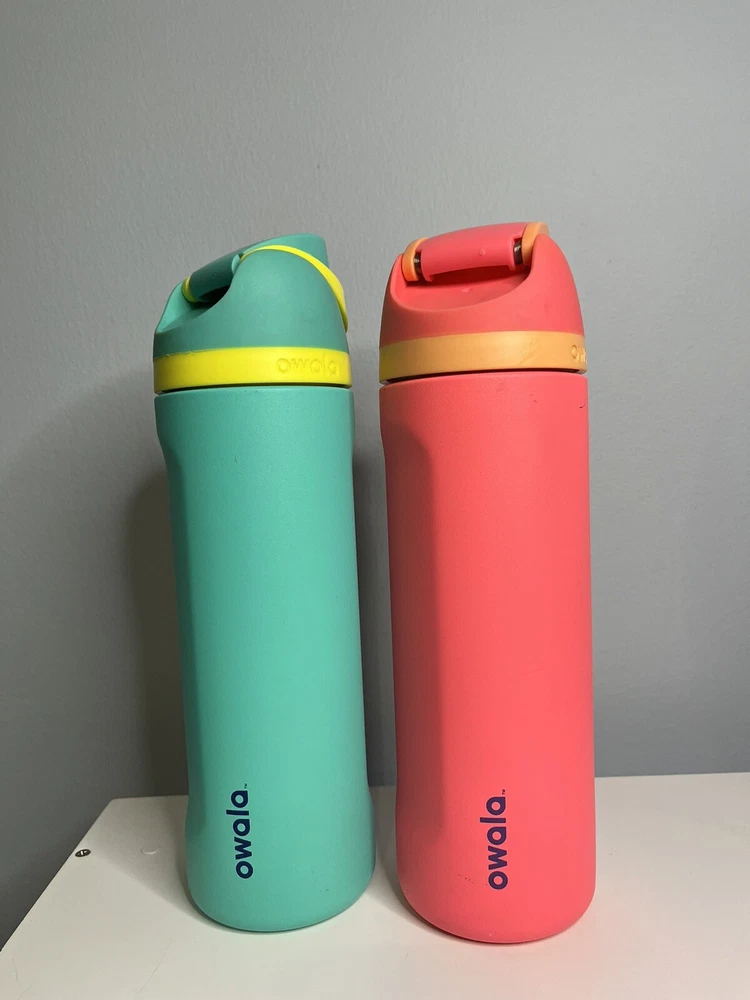 Two Owala FreeSip 24oz Stainless Steel Water Bottles Turquoise And Hot Pink This is for two Owala bottles. Good used condition with some cosmetic flaws as pictured