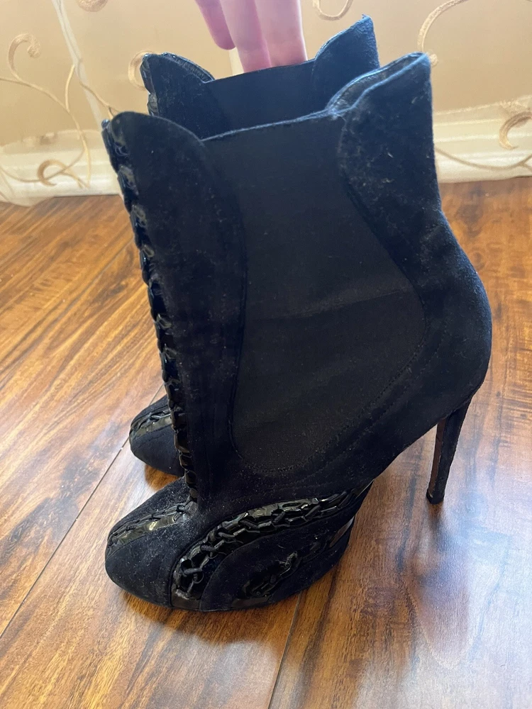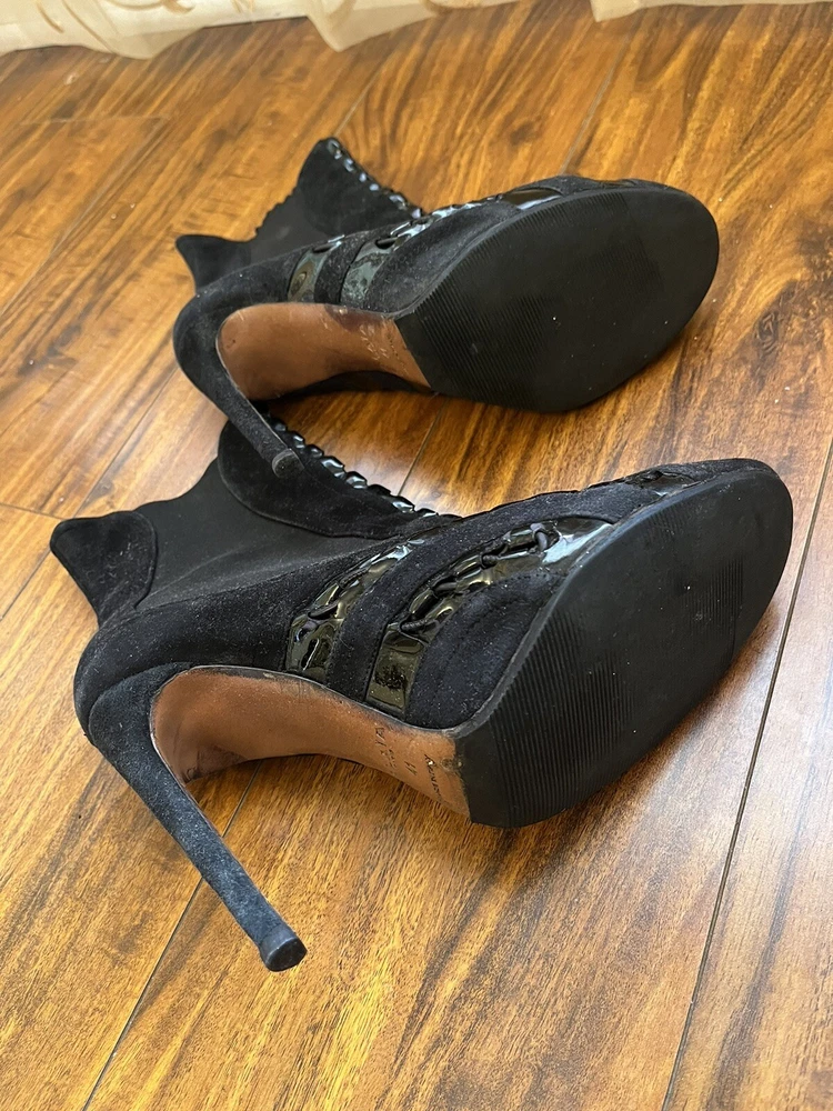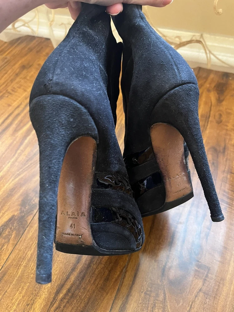 Two Pairs Of Heels (Alaia & Philipp Plein) PARIS HILTON allegedly Owned (READ!!). Hi! The story is that Paris Hilton left these shoes to be repaired at a cleaners a few years ago, but never picked them up. After some research, I was able to find photos of her wearing both shoes. They are also on the size google says she is. Of course I can’t grantee anything, but the signs are pointing to the story being true. The shoes were well loved.