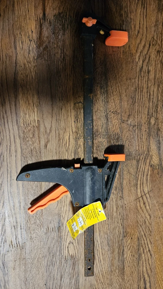 The product is a Pittsburgh brand 12-inch Bar Clamp with a model number 46807. It is made of carbon steel and manufactured in China. This ratchet bar clamp/spreader features a pistol grip for easy handling. The clamp has a jaw size of 12 inches and is designed in black color. This versatile tool can be used in various home and workshop projects for clamping or spreading tasks.