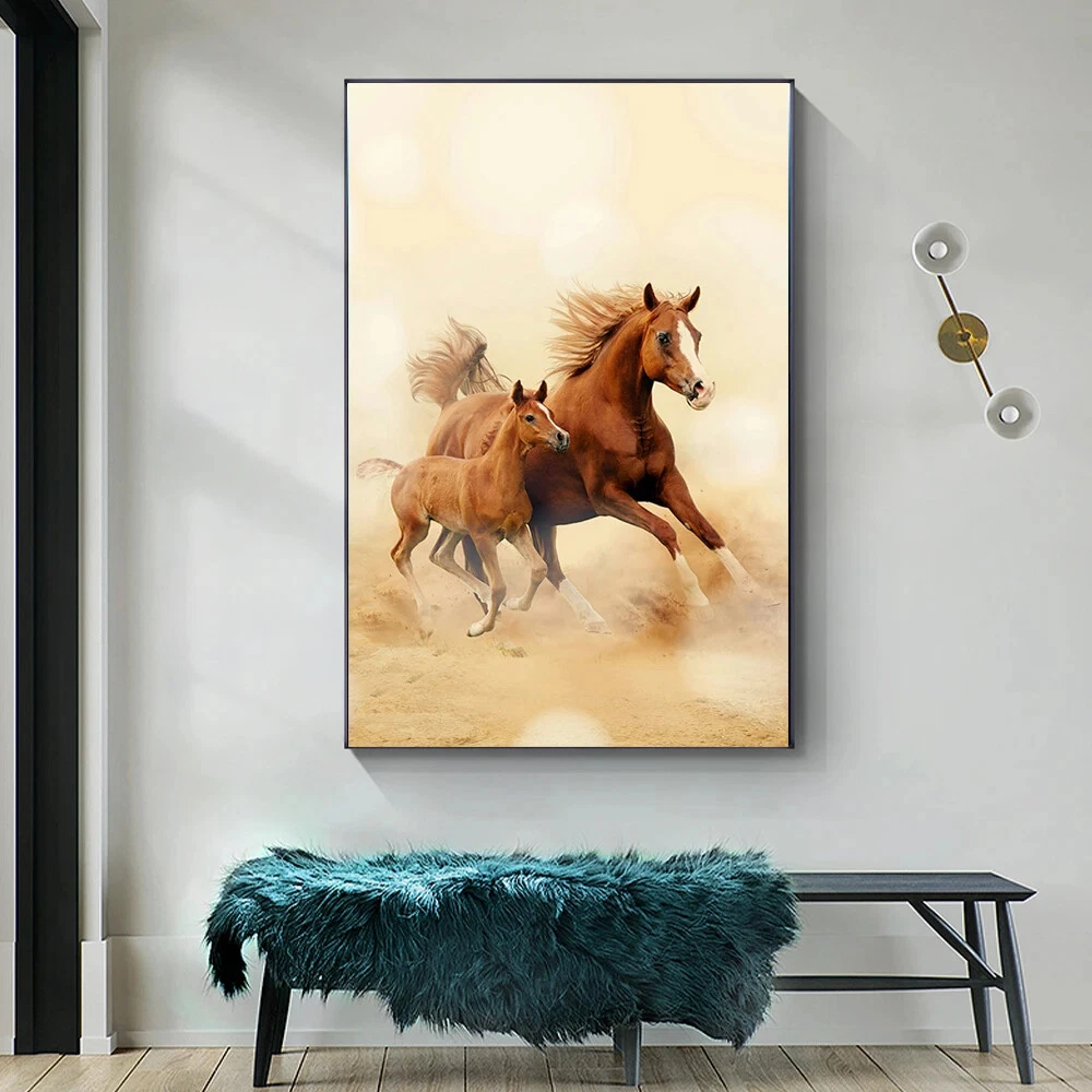 Two Running Horses Canvas Painting Wild Animal Horses Poster Wall Art Prints Art