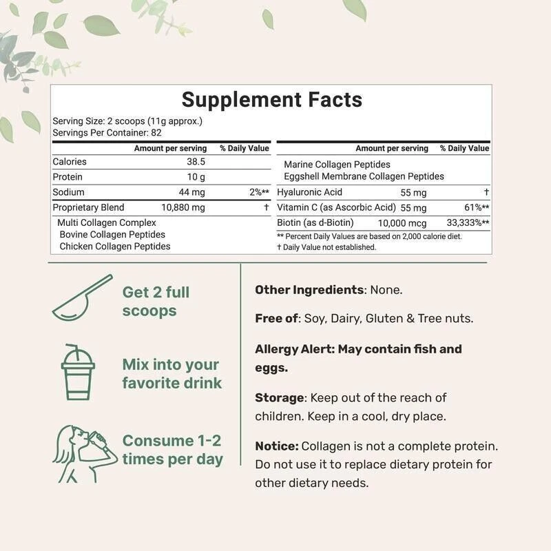 Product Description Features 1. Multiple collagens, rich in collagen types, have a more comprehensive skin and joint maintenance effect. 2. Ultra-high purity collagen powder can be better absorbed and utilized by the body, allowing you to have better health and beauty from the inside out. 3. Does not contain any additives or preservatives, completely natural ingredients, safer and healthier. 4. The unique formula combines a variety of nutrients. In addition to beautifying the skin, it can also nourish hair, nails and other parts. 5. Popular and convenient way of taking, easily added to milkshakes, juices, coffee or other foods, making daily consumption effortless. Comment: 1. Due to differences between different monitors, the image may not reflect the actual color of the item. Thank you so much! 2. SKU color is the color of product packaging Package Included: 1*collagen powder Payment Shipping Returns Contact Us All Modes of Payment are acceptable,such as Apple pay, Google pay, PayPal, credit card, etc. We will deliver the items to you within the processing time. Please provide us your correct receiving address (include house number, Street name) , so that we can ship the order to you as soon as possible! If you need us to ship the items by other way, please feel free to contact us. Thanks! Please check your shipping address carefully before checkout, it can't be changed if order completed. If you are not satisfied with your purchasing, you can return the product and get a full refund. But we will not responsible for the shipping and people damaged. You can return a product for up to 30 days from the date you’ve purchased it. Please contact us to confirm the return address before you return the items. Incorrect/Faulty/Damaged Items: Please contact us to arrange for the return via eBay messaging or one of the numbers above. NO postage will be refunded unless agreed upon in email or writing prior to returning. Monday to Friday 9:00 am to 6:00 pm. We do not work holidays . If you send email to us,In our working hours will be resumed within 24 hours. If you we are not satisfied with the product or service ,please contact me and don't give us negative or natural feedback,We must give you a satisfactory solution. Payment All Modes of Payment are acceptable,such as Apple pay, Google pay, PayPal, credit card, etc. Shipping We will deliver the items to you within the processing time. Please provide us your correct receiving address (include house number, Street name) , so that we can ship the order to you as soon as possible! If you need us to ship the items by other way, please feel free to contact us. Thanks! Please check your shipping address carefully before checkout, it can't be changed if order completed. Returns If you are not satisfied with your purchasing, you can return the product and get a full refund. But we will not responsible for the shipping and people damaged. You can return a product for up to 30 days from the date you’ve purchased it. Please contact us to confirm the return address before you return the items. Incorrect/Faulty/Damaged Items: Please contact us to arrange for the return via eBay messaging or one of the numbers above. NO postage will be refunded unless agreed upon in email or writing prior to returning. Contact Us Monday to Friday 9:00 am to 6:00 pm. We do not work holidays . If you send email to us,In our working hours will be resumed within 24 hours. If you we are not satisfied with the product or service ,please contact me and don't give us negative or natural feedback,We must give you a satisfactory solution. powered by