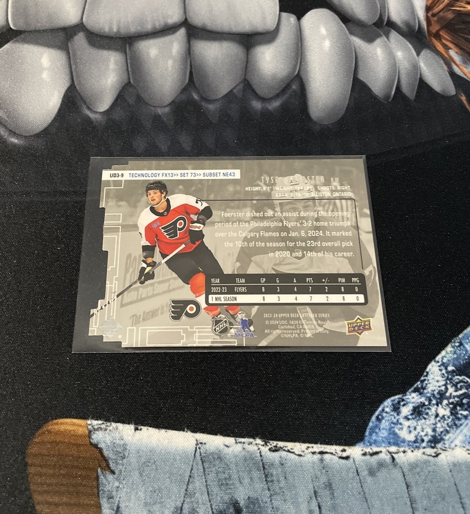 Tyson Foerster 2023-24 UD Extended Series UD3 Rookie RC #UD3-9 Flyers. Condition is Ungraded. Shipped with Canada Post Lettermail.