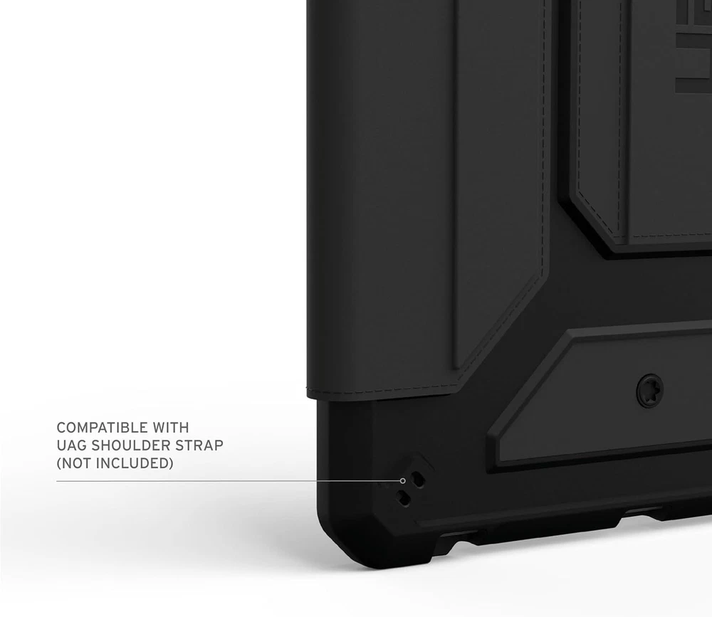 UAG Designed for Samsung Galaxy Tab S9 Case 11" 2023 SM-X710 Metropolis Black Product Details Brand: URBAN ARMOR GEAR Color: Black Compatible Devices: Tablets, Cameras, Laptops Form Factor: Case Shell Type: Soft LIGHTWEIGHT CONSTRUCTION: Our Samsung Galaxy Tab S9 case features a featherlight composite construction, a soft impact-resistant core, and enhanced corner protection providing top-of-the-line protection to withstand rugged conditions. ADJUSTABLE KICKSTAND: Auto wake/sleep folio cover that doubles as a multi-angle viewing kickstand to transform your tablet into a laptop with comfort and ease. Smooth to the touch exterior made with PU material provides both a great in-hand feel and a secure grip. Folio cover can withstand the use of daily cleaning wipes PRECISE FIT: Precise cutout with easy and full access to all buttons and ports. Soft-raised screen surround bezel to protect touchscreen and camera. S PEN STORAGE & PORTABILITY: Built-in S Pen holder and S Pen magnetic charging access. Shoulder strap tether anchor points for added portability (shoulder strap and stylus tether NOT included). MILITARY DROP PROTECTION: Meets Military drop-test standards (MIL STD 810G 516.6) Metropolis SE Series features a tough and rugged silhouette that provides your tablet with unbeatable protection. Featuring a featherlight composite construction and a soft, impact-resistant core to shield your tablet from serious drops from serious heights. Impact-resistant corners to shield your tablet from scratches and dents from accidental drops or falls. The folio cover doubles as a multi-angle stand to transform your tablet into a laptop with ease quickly. Soft touch and smooth PU exterior that can withstand the use of daily cleaning wipes. Thoughtful shoulder strap tether anchor points for the use of an adjustable shoulder strap (shoulder strap and stylus tether NOT included) for when your tablet is not in use or for transport. The perfect case for kids and people that rely on their tablets on the go.