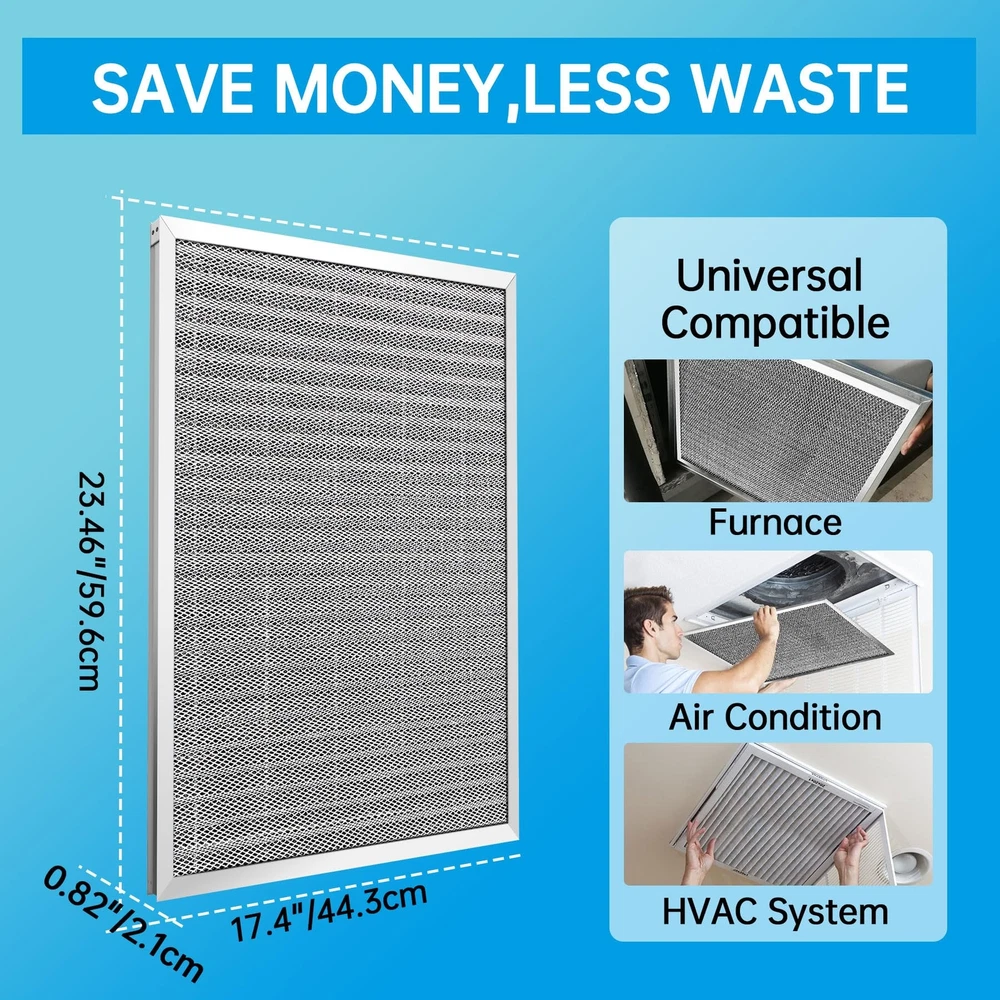 UBeesize 18x24x1 Reusable Electrostatic Air Filter HVAC AC Furnace Filter,MERV 8, Washable, Lasts a Lifetime,Permanent Air Filter,Breathe Fresher,Home And Office(Actual Size:17.44x23.46x0.82 Inch) Durable and Long-lasting:The UBeesize Electrostatic Air Filter is built to last. Made with an aluminum frame, it can withstand strong winds without deforming or breaking. This means you won't have to replace your air filter as frequently, saving you time and money in the long run Improved Air Quality:With its pleated layers, the UBeesize air filter is more efficient at capturing particles than other filters on the market. It can absorb up to 90% of dust, pollen, pet hair, and other particles, making the air in your home cleaner and healthier to breathe. Plus, its MERV 8 level ensures that it meets industry standards for air filtration Easy to Install and Maintain:Installing the UBeesize air filter is a breeze. Simply place it in the slot of your furnace, HVAC, or AC system. And when it's time to clean it, just wash it with water and a little detergent. The filter dries naturally and can be re-installed. We recommend cleaning it every 3 months and using gloves (not included) to change Waste Less And Friendly:The UBeesize air filter is reusable, which means you won't have to constantly replace it like disposable filters. This not only saves you money, but it also reduces waste and helps protect the environment. Plus, its washable design means you won't have to worry about disposing of it properly Versatile Compatibility:The UBeesize air filter is compatible with a wide range of furnace, HVAC, and AC systems. This means you won't have to worry about finding a specific filter for your system. Plus, its universal design makes it easy to install and maintain, no matter what type of system you have UBeesize 18x24x1 reusable air filter Shipping We offer FREE shipping on all orders! We use a selection of shipping services such as UPS, FedEx, USPS etc. We only ship to the lower 48 states, no APO/FPO addresses or PO Boxes allowed. Local pickups and combined shipping options are not provided at this time. Return You can return a product for up to 30 days from the date you purchased it. Any product you return must be in the same condition you received it and in the original packaging. Please keep the receipt. Payment We accept payment by any of the following methods: PayPal Please pay as soon as possible after winning an auction, as that will allow us to post your item to you sooner! Feedback Customer satisfaction is very important to us. If you have any problem with your order, please contact us and we will do our best to make you satisfied. Contact Us If you have any queries, please contact us via ebay. We usually respond within 24 hours on weekdays. Please visit our eBay store to check out other items for sale! Thank you for shopping at our store.