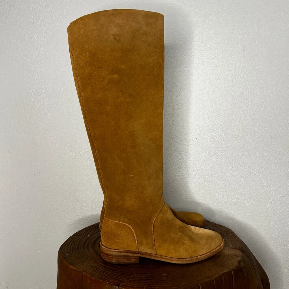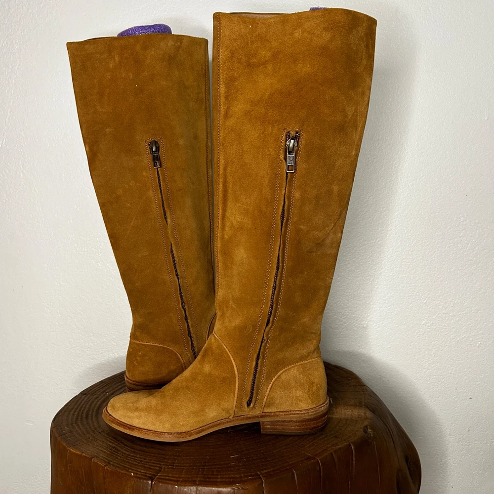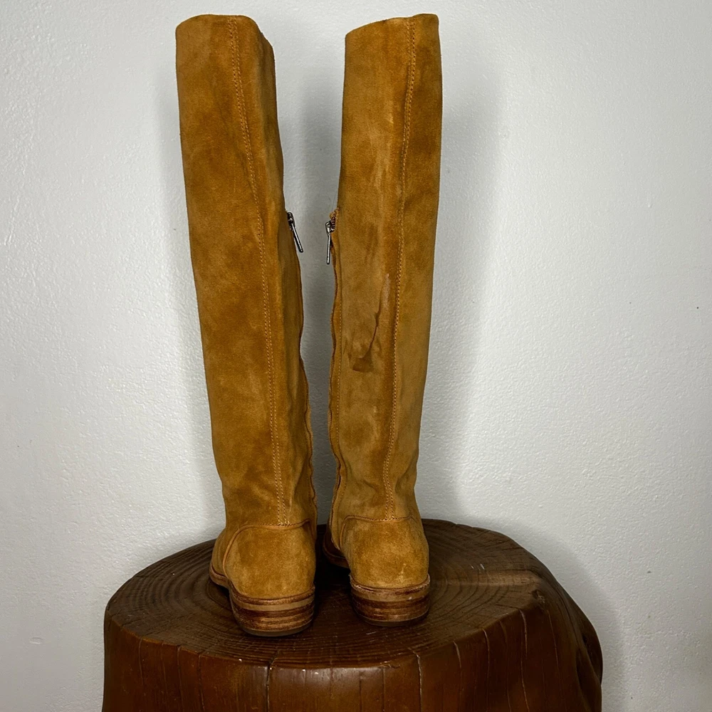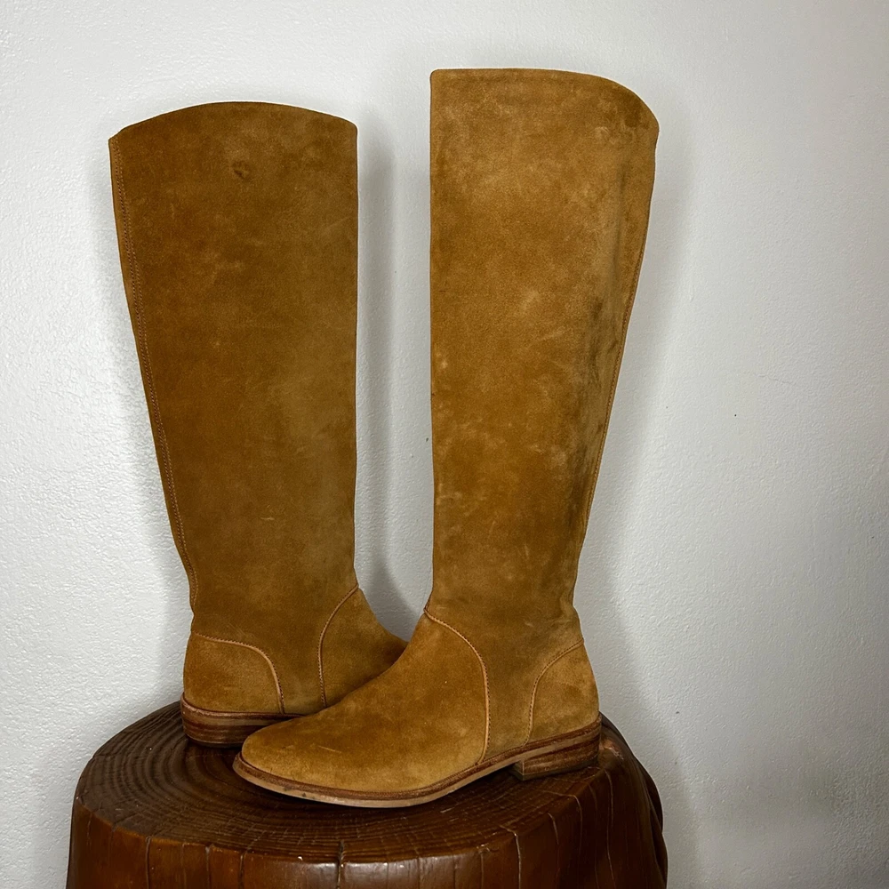 UGG 1020257 Daley Tall Equestrian Riding Boots – Chestnut Suede – US Size 5 Elevate your wardrobe with these timeless UGG Daley Tall Equestrian Riding Boots . Perfect for everyday wear or special outings, these boots combine comfort and sophistication in a classic design. Features: Brand: UGG Model Number: 1020257 Color: Chestnut (Tan) Material: Premium suede upper with leather accents Style: Tall equestrian/riding boots Size: US Women’s 5 Shaft Height: Approx. 15" Heel Height: Approx. 1" Details: Side zipper closure for easy on/off, cushioned footbed for all-day comfort Condition: Pre-owned Good Condition These boots exude a versatile style that pairs effortlessly with jeans, leggings, or dresses. Whether you're hitting the town or embracing a countryside vibe, the Daley boots offer both fashion and function. Don’t miss out on this classic UGG design—grab them before they’re gone! Feel free to reach out with any questions. Happy shopping!