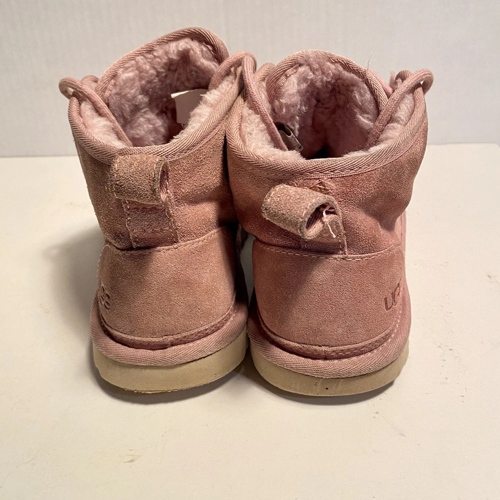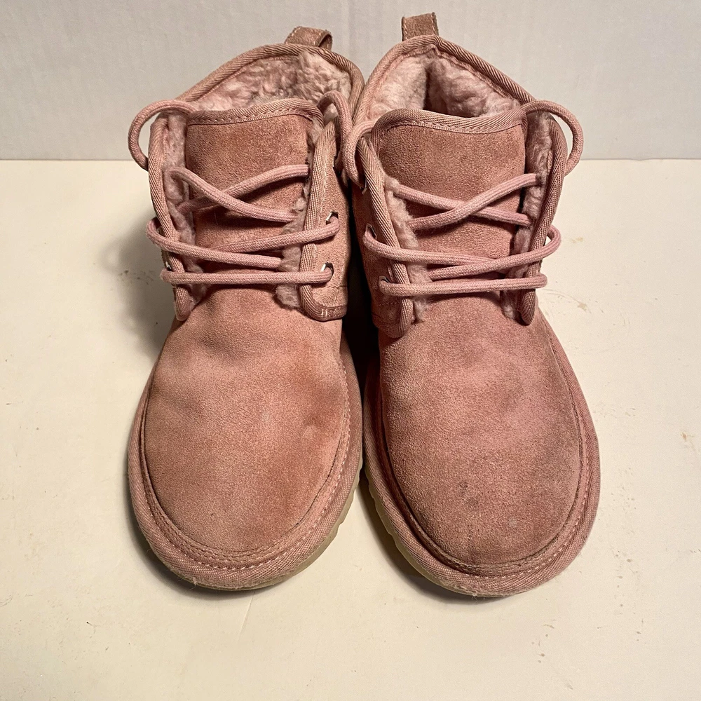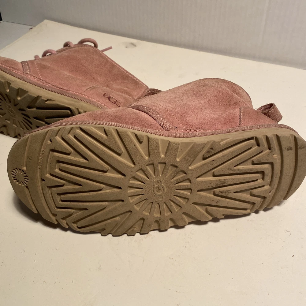 UGG NEUMEL WOMEN ANKLE BOOTS SUEDE PINK CLOUD US 7 /UK 5 /EU 38 /JP 24 Preowned in has some signs of wear bottoms in good condition overall condition 7/10 Elevate your style with these stunning UGG Neumel ankle boots. The pink cloud suede material adds a pop of color to any outfit, while the low heel height ensures comfort all day long. These boots feature a round toe shape and medium width, making them the perfect addition to any women's shoe collection. Fast responses if any questions and returns accepted if any issues with products