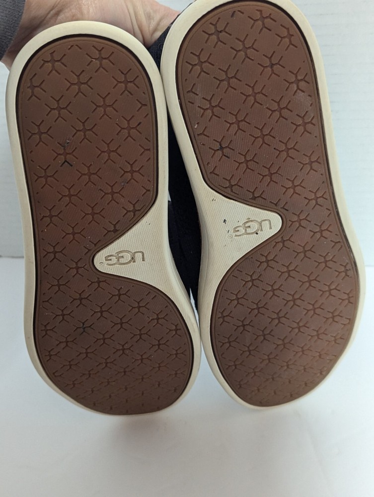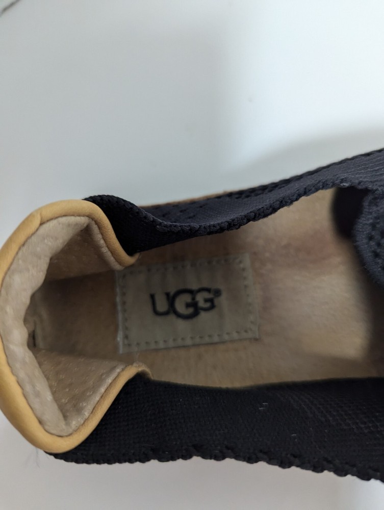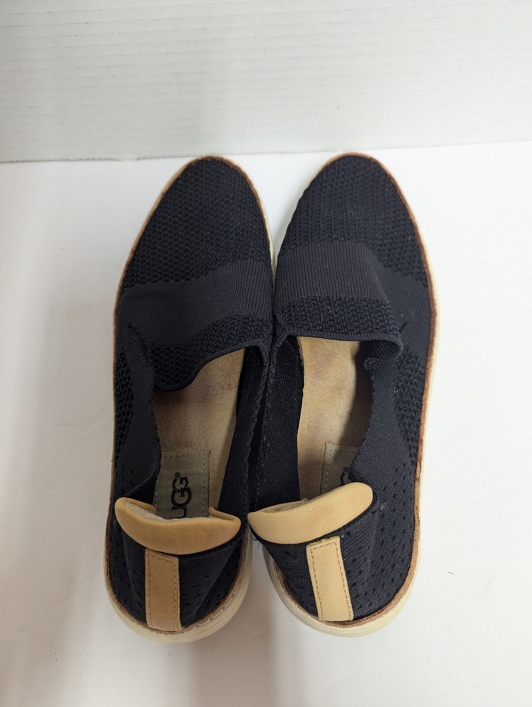 The UGG Women's Sammy Slip-On Sneaker in Black features a stylish black and gray knit hyper weave design with a slip-on closure for easy wear. The shoe is designed for casual occasions, offering comfort with a flat heel style and leather lining material. The sneaker also includes a rubber outsole for durability and standard shoe width for a comfortable fit. Made by the brand UGG, known for their quality footwear, this slip-on sneaker is a fashionable and practical choice for women looking for both style and comfort in their everyday wear.