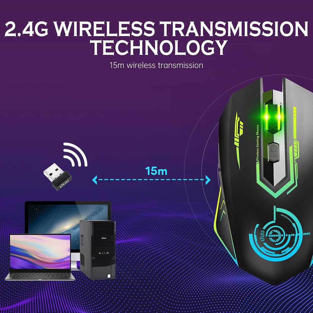 This wireless gaming mouse is a total game-changer! Smooth, precise tracking up to 10,000 DPI makes it perfect for fast-paced action. The rechargeable battery saves money on disposables, and the 6 customizable buttons give you an edge in MMO/RPGs. Love the vibrant RGB lighting that adds flair to my setup. Super comfortable ergonomic design even during long sessions. Works flawlessly on both my Windows PC and Mac—no lag whatsoever. Definitely a steal for the price!