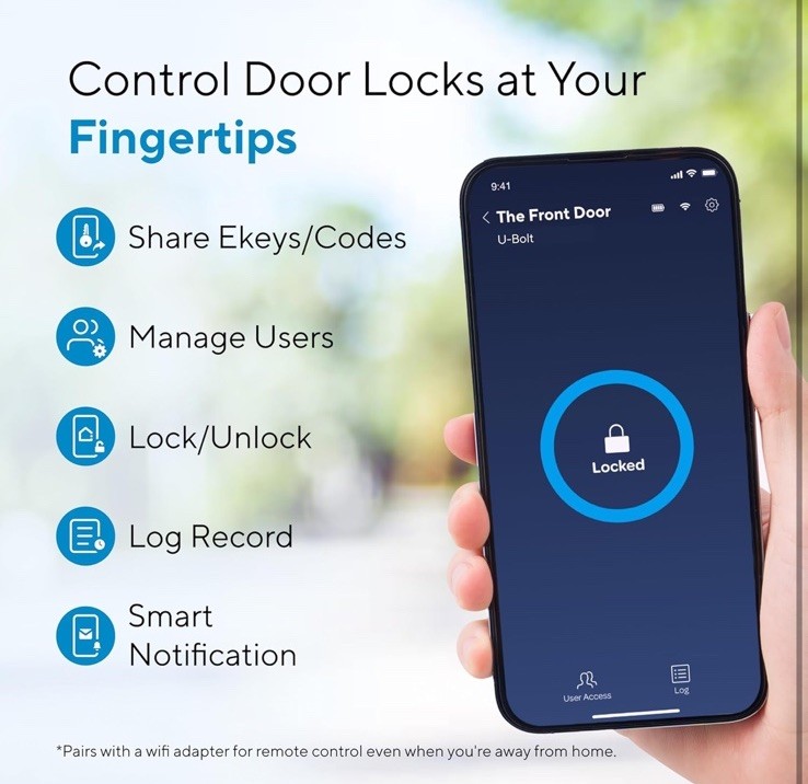 Brand ULTRALOQ Special Feature Smartphone Control From Anywhere, Auto Lock and Auto Unlock, Glove-friendly Fingerprint-resistant Keypad, ANSI Grade 1 Certified, Works with Alexa, Google, SmartThings, IFTTT, No Drilling RequiredSmartphone Control From Anywhere, Auto Lock and Auto Unlock, Glove-friendly Fingerprint-resistant Keypad,… See more Lock Type Deadbolt, Combination Lock, Keypad Item dimensions L x W x H 2.95 x 2.95 x 0.98 inches Material Zinc Recommended Uses For Product Home/Office/Airbnb/Apartment/Rental 6-in-1 Keyless Entry Door Lock: Anti-peep Keypad + Smartphone App + Auto Unlock + Shake to Open + Compatible with Apple Watch + Voice control with Alexa and Google Assistant + Works with SmartThings and IFTTT + Mechanical Key. APP Control & Share Ekeys from Anywhere: Smart locks enable you to lock, unlock, manage access rights, view access logs of who's entered and exactly when they did remotely using smartphone App and authorize family members, guests, or tenants to unlock doors using the app via Bluetooth or WiFi. Additionally, they allow for password setting and provide convenient access management. Connectivity: 2.4GHz WiFi only. Auto Lock and Auto Unlock: Smart Lock automatically locks on a preset timer and unlocks when you arrive at your door with your smartphone in your pocket. Utilize the "ULTRALOQ" button on your keyboard to "One Touch Lock". Low battery alert via app. Add random digits to protect your passcode from prying eyes. With the backlit keypad, entry your home easily even at night. Certified Highest Security and Durability: Meets ANSI Grade 1 Standard. Proven for up to 35 times strength of standard residential locks along with a 7 times longer lifespan. IP65 rated dust and weatherproof external Smart Lock built to withstand heat and cold. DIY Installation: ULTRALOQ Smart deadbolt fits on most US standard left-handed or right-handed doors. Replace your current deadbolt with just a screwdriver in 10 mins. Backed by Ultraloq, world’s leading smart lock brand with more than 1 million happy American users.