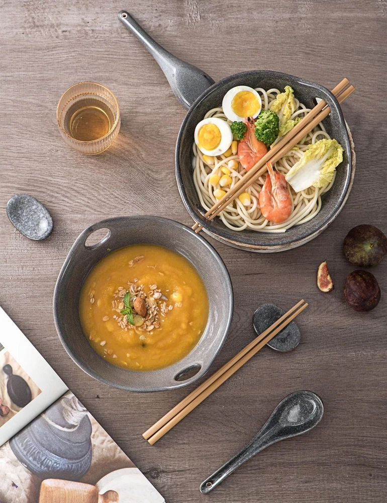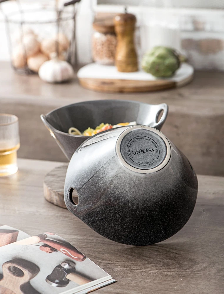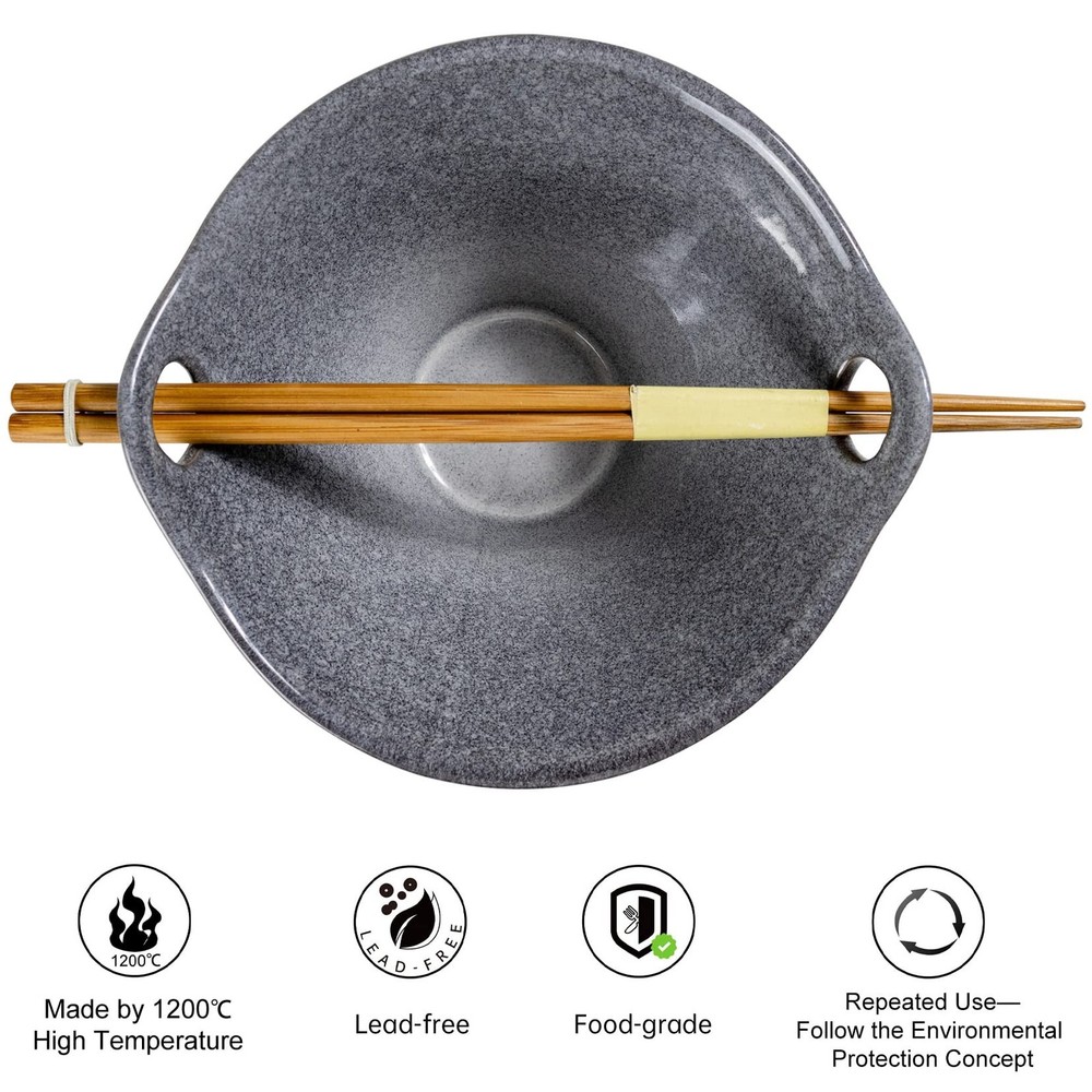 UNICASA Japanese Ramen Bowl Set with Chopsticks, Spoons and Rests, 26oz Deep Porcelain Noodle Bowl Set of 2 for Udon, Pho, Salad, Soup (Reactive Gray) Product Details Color: Gray Size: 26oz Brand: UNICASA MPN: NAJJ-1CFDS641 UPC: 712004384351 EAN: 0712004384351 Bowl Material: Porcelain Number of Pieces: 2 Brand: UNICASA Color: Gray Style: Japanese, Professional Bowl Material: Porcelain Number of Pieces: 2 Brand: UNICASA Color: Gray Style: Japanese, Professional Special Feature: Dishwasher,Corrosion Resistant,Solid Shape: Bowl,Spoon Capacity: 1.6 Pounds Specific Uses For Product: Ramen Included Components: 筷子 Theme: Christmas Pattern: Solid Product Care Instructions: Microwave Safe, Dishwasher Safe Is Dishwasher Safe: Yes Is Microwaveable: Yes Material: Porcelain Ceramic Product Dimensions: 8"W x 7.25"H Occasion: Christmas Manufacturer: UNICASA Size: 26oz UPC: 712004384351 Item Weight: 2.2 pounds Country of Origin: China Item model number: NAJJ-1CFDS641 Date First Available: March 18, 2021 Distinctive Design - The bowls are modern Asian serving shapes with cutout handles for easy carrying and resting the chopsticks nicely. The set includes: 2 ceramic bowls (size: 8x7.25x4.5 inch), 2 pairs of bamboo chopsticks (9 inch), 2 spoons (6.5 inch) and 2 spoon rests (2.25 inch). This outstanding design will match well your delicious food. Food Grade Quality - When it comes to food containers, safety is paramount. The Unicasa ceramic ramen bowls are made of sturdy porcelain with a firing temperature of over 1300C. Our raw materials are in A Grade - Lead & Cadmium free. Non-toxic which is safe for you and your families. Meet Multiple Needs In Different Occasions - When you serve breakfast, lunch, and dinner, the pho soup bowls meet all your needs. Ideal for parties, festivals, family celebrations, and so on. Great experience for Asian-inspired foods like noodles, udon, soba, miso, tonkotsu, dumplings, fried rice, stir fry... Scratch Resistant & Easy Cleanup - The ramen noodle bowls are made of transparent glaze. Nonstick, the smooth glaze resists scratch and makes this ramen bowl easy to clean! This means the bowl retains its pristine appearance and functionality over time, saving you from the hassle and expense of frequent replacements. Warm Tips of Use - Microwave, Dishwasher & Freezer Safe for the Japanese noodle bowls. Please allow the bowls to cool before submerging them in water. Hand washing is recommended for the bamboo chopsticks. If you have any questions, please do not hesitate to contact us.