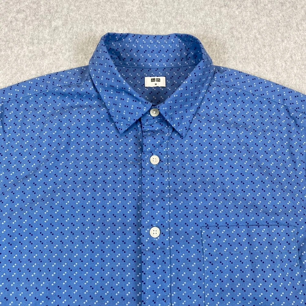 UNIQLO Shirt Men's Medium Blue Geometric Print Short Sleeve Classic Button Up Item: The photos provided depict the actual item you will receive. Any defects or spots will be clearly shown in the photos. Shipping: We offer fast and reliable shipping! All orders will be provided with a tracking number to ensure that your item arrives promptly. Return Policy: 30-day hassle-free returns. See our return policies for details. Feel free to reach out to us through eBay with any questions!