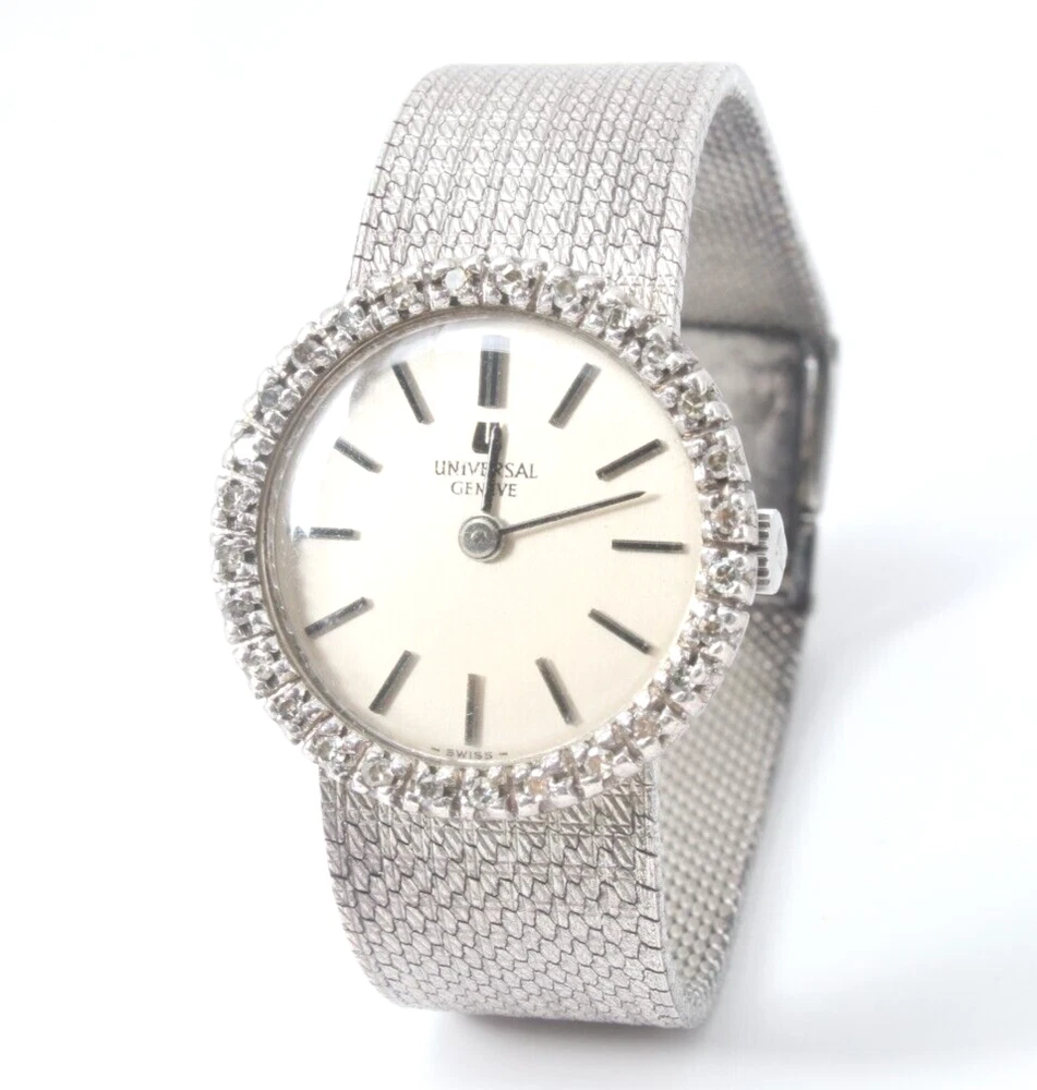 Reputable seller Great service Fast shipping (Average 3days) Satisfaction guarantee about us feedback add us contact Popular description ★Brand: Universal Geneve ★Dial color:White ★Band material: Silver ★Movement:Manual Winding ★Dial size 2.3cm ★ Weight: approx. 38.5g ★ Arm circumference: approx. 14-15cm