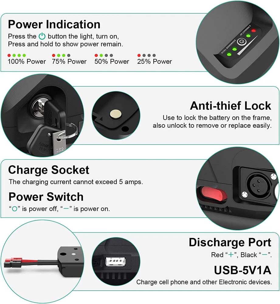 ✨Welcome to UPP official store✨ Why choose our Unit Pack Power battery? > Factory directly store : 10 years battery packing experience, from 24V, 36V 48V 52V 60V 72V to DIY Voltage/Size, all we can make it for you, Mature production technology, and filter the high consistency cells, we know how to make a reliable and safe battery for customers. > Battery quality : There are Grade A B C level battery, Unit Pack Power only use grade A cell for battery, safest packing process, never use cheap / false cells with false capacity / low price to attract buyers. price = quality = customer's service, you want to get a long range / long life / safe battery for your bike, or want to get a unknown cells battery back your home? > 800-1000 times cycle : Ebike battery charging cycle exceeds 1000 times. Each lithium battery has passed the QC test for appearance and function before shipment. High-quality electric cells and a built-in BMS protection board prevent over-charge, over-discharge, over-current and short-circuit, ensuring long service life. > Widely Compatible : Our battery fits most motor kits, for example: Bafang, Voilamart, CSC, Tongsheng, Ebikling, but exclude these four: Bosch, SHIMANO, Yamaha, Panasonic. > After-sale service : 2 months free return, 2 years warranty, lifetime technical support. Unit Pack Power batteries have insured to International Insurance, rest assured to buy. Unit Pack Power assemble ALL our batteries in our factory, Professional imported machine spot welding, neat electric welding, cleverly designed the routing direction. Good welding process. Multi-Function Frame Battery Built-in genuine A+ grade lithinum cell. With on/off button , help you save more power. With USB port , you can charge your phone anytime. With Secure Lock , avoid your battery be stolen. Lighted battery LED power Indicator , inform you charge your battery on time. Each pack have ran through a full charge and discharge test in produce, to make sure you are getting every amp hour you paid for. With Strong Battery Manage System Our BMS can protect battery prevent may problem,such as √Balance function √Overcharge protection √Overcurrent protection √Short circuit protection √Overvoltage protection √Temperature protection √Over discharge protection √Reverse charging protection With our strong, you can use this triangle ebike battery more safety. Let you have a more pleasure experience while you are riding. Use A+ grade cells All THE TIME Unit Pack Power never use fake cells. We insist on using A+ grade battery cells all the time. This is why our battery is expensive than others. Battery looks the same outside but different inside. there are many seller use low grade cells. When you receive them at first, they behave like a normal battery. But when you use it for a few months, you will find that the battery no longer works. Specification: Type(S039-3) 36V 13Ah /15Ah 36V 20Ah 48V 10Ah/13Ah/15Ah 48V 20Ah 52V 13Ah Suitable for 36V 0-700W motor 36V 0-700W motor 48V 0-1000W motor 48V 0-1500W motor 52V 0-1000W Motor Nominal Voltage 36V 36V 48V 48V 52V Rated Capacity 13A /15Ah 20Ah 10Ah/13Ah15Ah 20Ah 13Ah Battery Cell 2500mah Cell LG 4800mah cell 2500mAH Cell LG 4800mAH Cell 2500mAH Cell Max Constant Discharge Current 25A (BMS) 25A (BMS) 30A (BMS) 40A (BMS) 30A (BMS) Charger 42V 2A 42V 2A 54.6V 2A 54.6V 2A 58.8V 2A Discharge Connector Big bullet XT60 Anderson XT60 Anderson Cell Size (L*W*T ) 365*90*110mm / 14.37*3.54*4.33 inch Type(S039-5) 52V 20Ah Suitable for 52V 0-1500W motor Nominal Voltage 52V Rated Capacity 20Ah Battery Cell LG 4800mAH Cell Max Constant Discharge Current 40A (BMS) Charger 58.8V 2A Discharge Connector XT60 Cell Size (L*W*T ) 365*90*127mm Package Include: Payment We accpet payment via ebay payments only . Import duties,taxes and charge are not included in the item's price or shipping cost.These charges are the buyer's responsibility. Please check with your country's customs office to determine what these additional costs will be prior to bidding or buying. Insurance is included in the Shipping & Handling costs paid. Shipping Items are generally shipped out in 1-6 business day after your payment has been cleared (Sat. & Sun. excluded.) All Products are rechecked before shipped out . Local pick up is not available. Fast shipping Fedex to most addresses . Tracking provided for all shipments. Returns You have 60 days to return it from the date it was received. We will refund your full winning bid amount , upon receipt of the item in its original condition and package with all components and accessories included. Contact Us Dear buyers,we appreciate your business, if you are satisfied with our service , please leave us a Positive feedback and rate the details of the transaction (Detailed Seller Ratings) with a " Pefect Stars " . We aim to provide best services and products in exchange your maximum statifaction. We will do our best to resolve your issue till your satisfaction. Our working time is: 09:00 AM-18:00 PM(Chinese time from Monday to Saturday) .All emails will be answered within 24 hours except weekends and holidays.