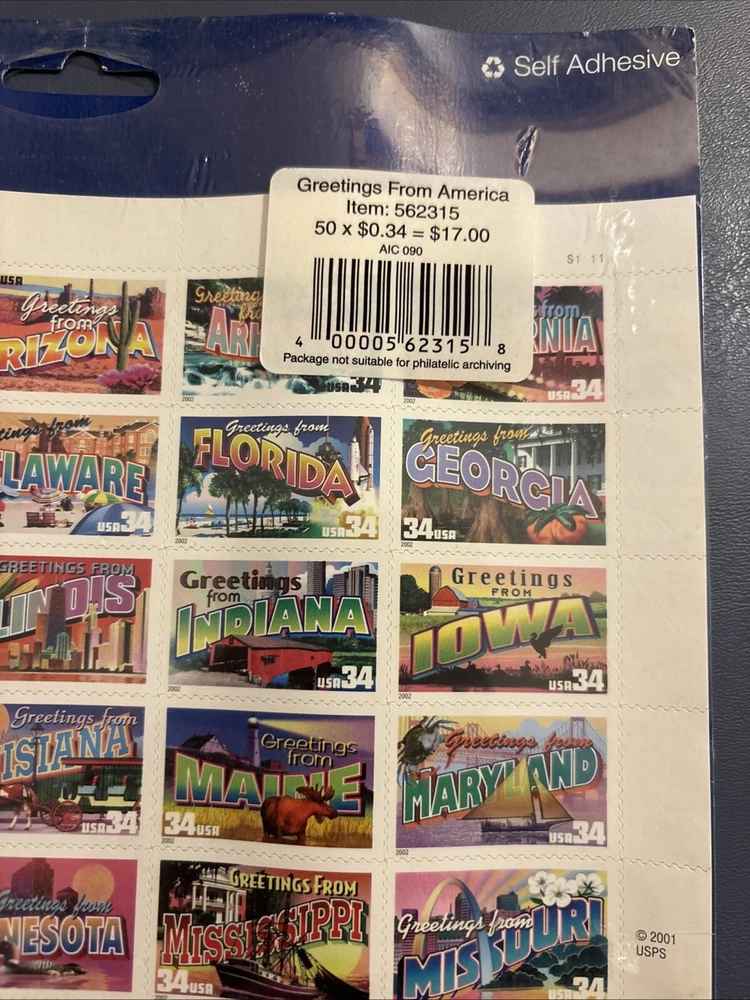 The product is a set of 50 singles of US postage stamps from the "Greetings from America" series, each with a denomination of 37 cents. The stamps were issued between 2001-2010 by the United States Postal Service, showcasing various state-themed designs in multi-color. They are of XF/S grade quality and are mint never hinged. The set is a complete collection representing all 50 states in America. Thank you for looking Email Email with any questions