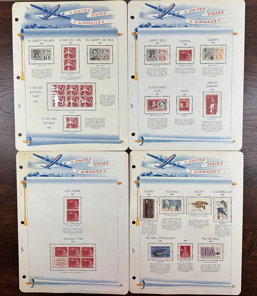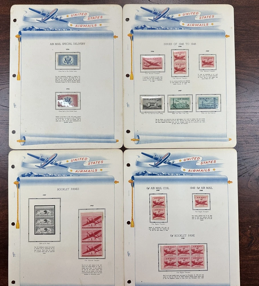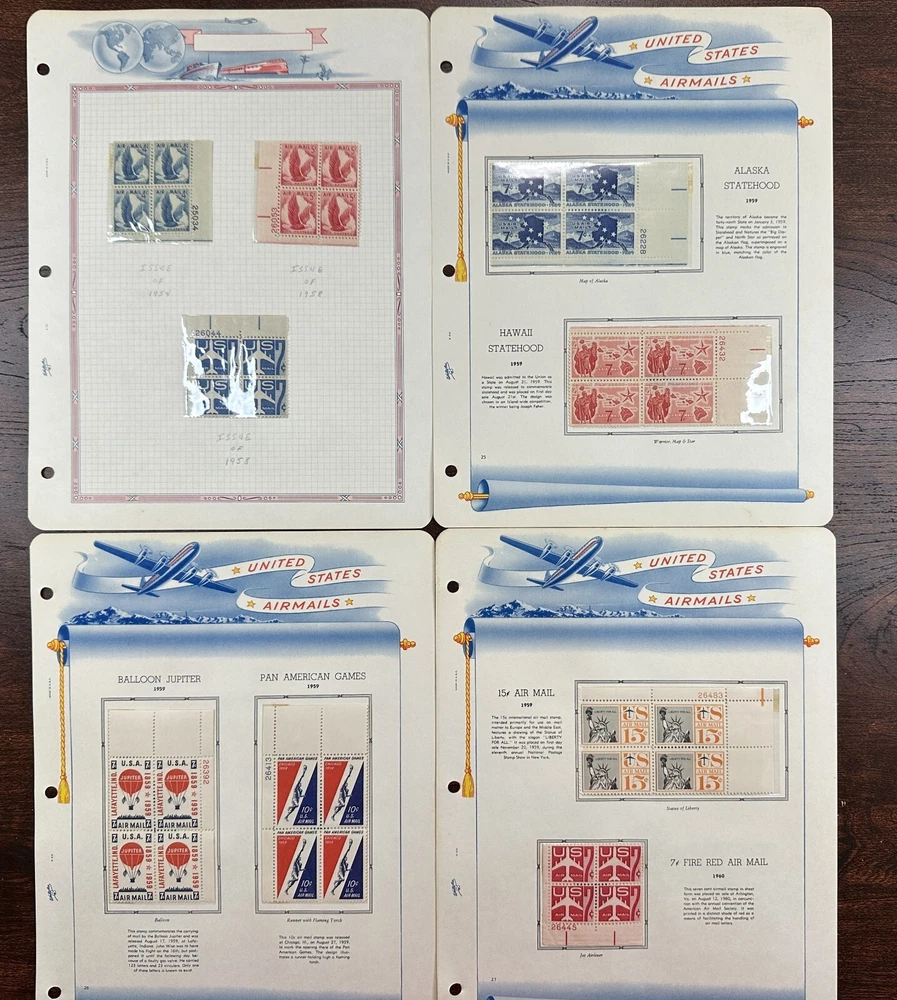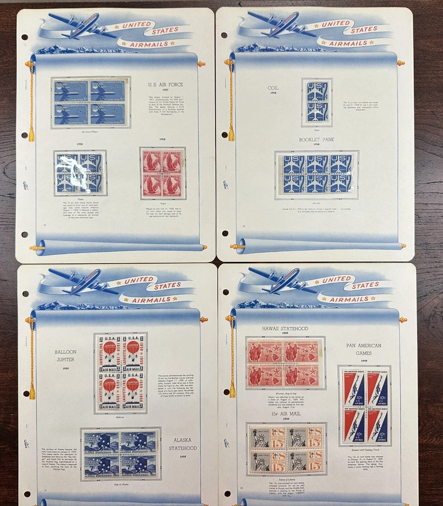 A US air mail album with mostly unused, mounted stamps. Pictures show all stamps. Stamps have not been checked for quality or correct album placement.