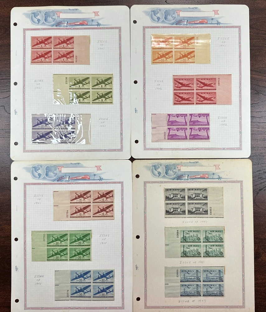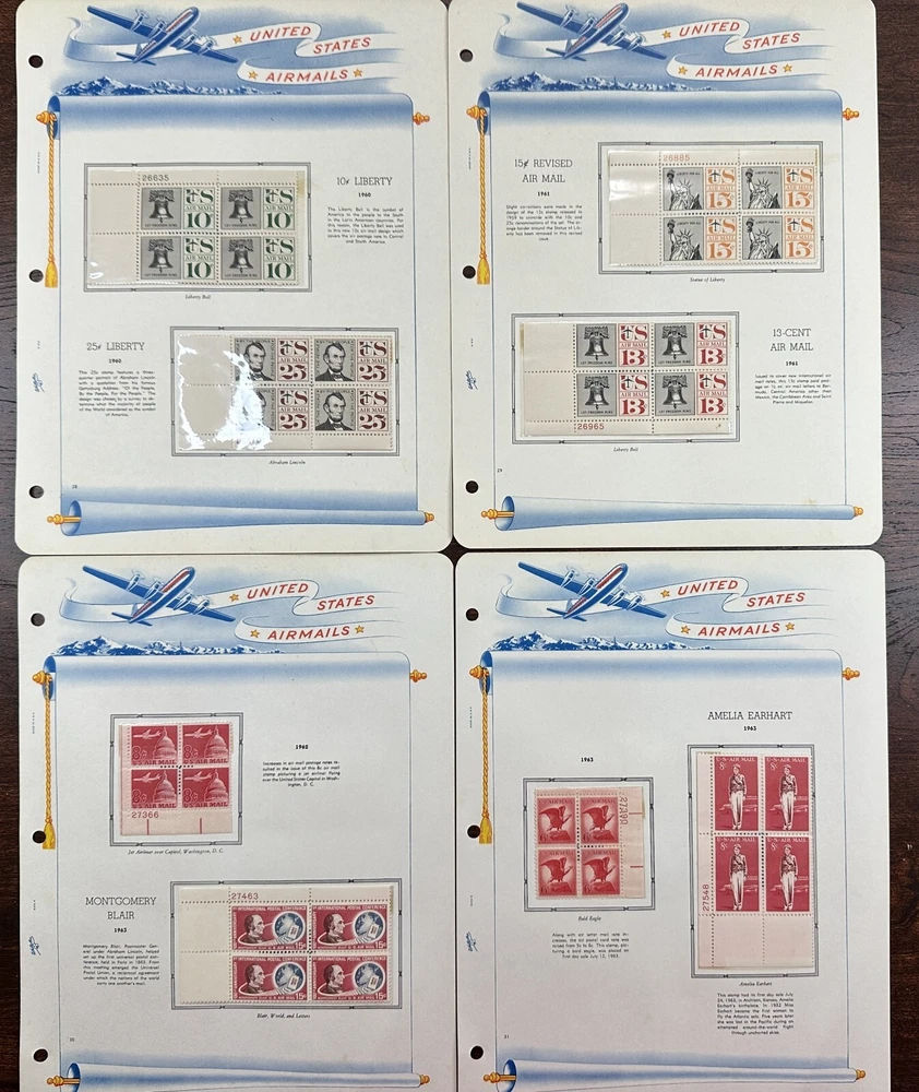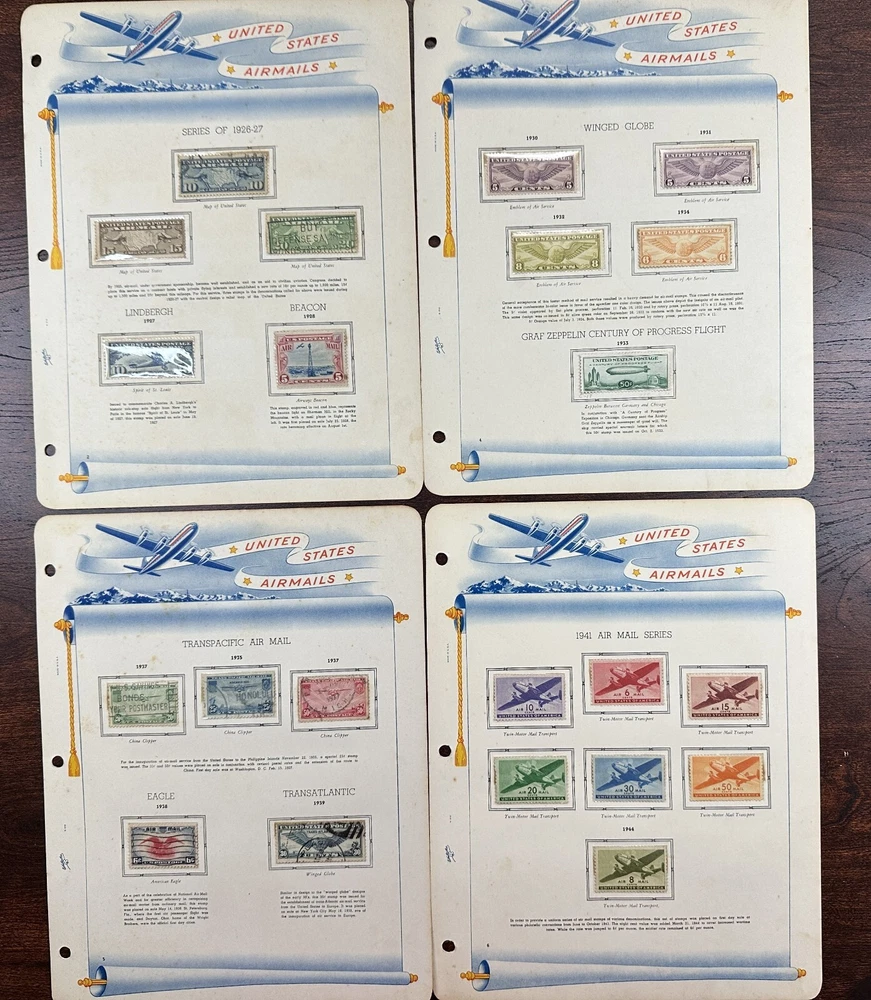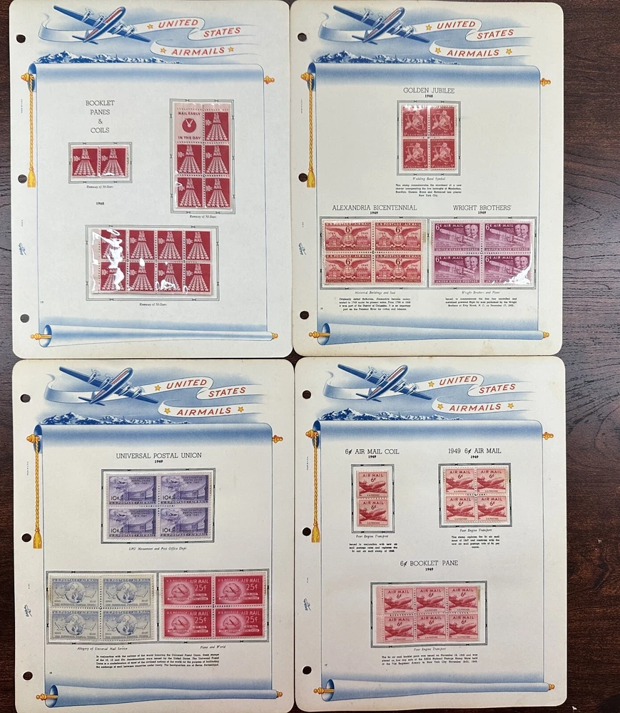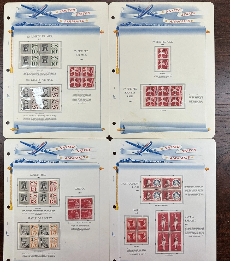 A US air mail album with mostly unused, mounted stamps. Pictures show all stamps. Stamps have not been checked for quality or correct album placement.