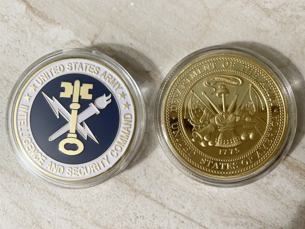 This US Army Intelligence and Security Command challenge coin is a must-have for collectors and military enthusiasts! The detailed design and solid craftsmanship make it a standout piece. Perfect for showing pride in service or gifting to someone who appreciates military memorabilia. Feels high-quality and has a nice weight to it—definitely worth adding to your collection!