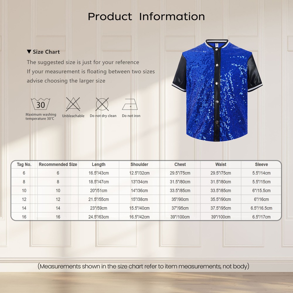 Click Here to New Arrivals New Arrivals Hot Sale Women's Dresses Women's Swimsuit Girls'Dresses Girls'Sleepwear Girls'Swimwear Boys'Clothing Baby Clothing US~ Boys Girls Glittery Sequins Shirts Blouse Hip Hop Street Dance Tops Costume #1 Set Include : 1x Tops Condition : New without tag Material : 60% Polyester, 40% Sequins Features : Girl’s top combines with shiny sequin body and metallic sleeves will make your child stand out from the performance. Press button closure allows for easy wearing. This fashionable top is great to match with shorts or sweatpants. The lining of sequins top is made of soft fabric, no scratchy to the skin, breathable and comfortable to wear. Perfect for hip-hop, jazz dance, dance party, birthday party, school show, dance class, stage performance, and so on. Size Table means age ranges for kids, but they are for general guidance only. Hand wash cold recommend. Size Chart : The suggested size is just for your reference. If your measurement is floating between two sizes, advise choosing the larger size. (Measurements shown in the size chart refer to item measurements, not body) Tag No. Recommended Size Length Shoulder Chest Waist Sleeve 6 6 16.5"/43cm 12.5"/32cm 29.5"/75cm 29.5"/75cm 5.5"/14cm 8 8 18.5"/47cm 13"/34cm 31.5"/80cm 31.5"/80cm 5.5"/15cm 10 10 20"/51cm 14"/36cm 33.5"/85cm 33.5"/85cm 6"/15.5cm 12 12 21.5"/55cm 15"/38cm 35"/90cm 35.5"/90cm 6"/16cm 14 14 23"/59cm 15.5"/40cm 37"/95cm 37.5"/95cm 6.5"/16.5cm 16 16 24.5"/63cm 16.5"/42cm 39"/100cm 39"/100cm 6.5"/17cm Friendly Tips: The size is measured by hands, please allow 1-3cm errors of measurement. Photo color might be a little different from the actual product due to color display of different monitors. #2 Set Include : 1x Vest Condition : New without tag Material : 95% Cotton, 5% Spandex Features : Size Table means age ranges for girls, but they are for general guidance only. Cotton lining, provide a breathable and comfortable wearing experience. Spaghetti straps vest for kids girls, ribbed design, solid color, cropped length. It can be worn alone or inside, great to pair with sweatpants, leggings, etc. Great for sport, fitness, gym, workout, training, running, jogging, or daily wear. Size Chart The suggested size is just for your reference. If your measurement is floating between two sizes, advise choosing the larger size. (Measurements shown in the size chart refer to item measurements, not body) Tag No. Recommended Size Chest Length M 8-10 22.8’’/58cm 11.0’’/28cm L 10-12 23.6’’/60cm 11.8’’/30cm Friendly Tips: The size is measured by hands, please allow 1-3cm errors of measurement. Photo color might be a little different from the actual product due to color display of different monitors. Product names are trademarks of the listed manufacturer or other owners, and are not trademarks of alwaysforbauhinia. The manufacturer does not necessarily endorse use of these products. Payment Methods Terms and Conditions Shipping Combined shipping is limited only to the items listed under this seller account : rakendw All the free shipping item don't offer discount. We REDUCE US$1.00 on shipping cost for each additional item. Please contact us to send you the update invoice once you finish your purchase. Please note that only the item in same currency can be combined.Please note that we do NOT offer shipping discount for bidding orders or item value less than $5.00 International Orders: The buyer is responsible for any applicable import duties and local taxes. Please verify with your customs before making your purchase. Please verify your address during checkout. We are not responsible for any wrong or undeliverable addresses. Your item will be sent to your ebay address. Please make sure your ebay address is correct. Any non- received items caused by invalid address are not in our full refund or replacement policy. All items will be shipped within 1 business day after full payment is received. It takes about 10-20 days to US UK AU DE; about 20-35 days to other countries.Shipping may influenced by holidays, events and other uncertainties. We could not guarantee the arrival time. If you can't accept the shipping time, please check the extra charge with us to ship your item via express. Please check my other products below: Kids Girls' Metallic Camisole Tops Gymnastics Tank Crop Vest Yoga Dance Clothes USD 10.99 Kids Girls Bra Gymnastics Vest Ballet Crop Top Rhinestones Cutout Back Dance USD 7.49 US Kids Girls Tops Hip-hop Crop Top Fitness T-Shirts Workout Activewear Stretchy USD 19.99 Kids Girls Bra Shockproof Top Competition Shirts Running Sleeveless Undershirts USD 15.99 Kids Girls Sweatshirt Glitter Jacket Zip Up Blouse Festive Coats Hip Hop Tops USD 12.99 Kids Coat Baseball Sweatshirt Motorcycle Shiny Jacket Sparkle Top School Bomber USD 12.99 Kids Girls Crop Top Halloween T-shirt Indian Blouse Zip-Back Tops Short Sleeve USD 12.99 Kids Girls Bra Ultra Vest Practice Tops Sports Spaghetti Class Seamless Dance USD 12.99 Kids Girls Tops Class Vest Cropped Bra Daily Wear Spaghetti Underwear Seamless USD 12.99 Kids Girl's Top Camisole Sport Crop Top Sleeveless Gymnastics Dance Yoga Vest USD 7.99 Kids Girls Shiny Metallic T-Shirts Short Sleeve Hip Hop Street Dance Tops USD 9.99 Kids Girls Shiny Metallic Long Sleeve Bomber Jacket Jazz Hip-hop Top Coat USD 9.99 Kids Girls Sleeveless Crop Top U Neck Shoulder Straps Cross Shockproof Tops USD 10.99