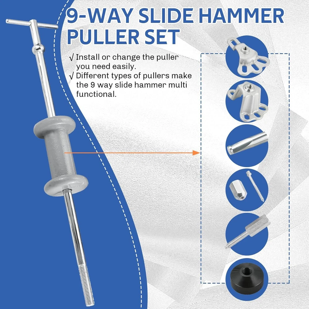 U.S.A???? Fast delivery?? Fast Shipping???? Easy for Operation: Install or change the dent hub gear puller remover set you need easily. Hand operated and screw-in design make it easy to install and use a simple yet effective set. Comes with a portable plastic case for easy carrying. Keeps all the repair tools tidy and resist. Durable Construction: Heavy duty & durable deals with stubborn hubs. The well-constructed 5lb hammer can do light to heavy duty jobs. This top-grade slide hammer puller set is expertly made in compliance with stringent industry standards to offer a fusion of a well-balanced design and high level of craftsmanship. SuperMotor DASBET 9-Way Slide Hammer Puller Set | 19PCS Front Wheel Hub Bearing Remover & Rear Wheel Axle Hub Dent Shaft Puller Tool Kit Dent Hub Gear Puller Remover Set U.S.A???? Fast delivery?? Fast Shipping???? Easy for Operation: Install or change the dent hub gear puller remover set you need easily. Hand operated and screw-in design make it easy to install and use a simple yet effective set. Comes with a portable plastic case for easy carrying. Keeps all the repair tools tidy and resist. Durable Construction: Heavy duty & durable deals with stubborn hubs. The well-constructed 5lb hammer can do light to heavy duty jobs. This top-grade slide hammer puller set is expertly made in compliance with stringent industry standards to offer a fusion of a well-balanced design and high level of craftsmanship. Jaws Details: The front wheel hub bearing remover including 2-jaw and 3-jaw pullers for internal and external work to provide a variety of combinations to pull bearing gears and seals. 2 and 3-way cross blocks and cone-type puller provide the perfect jaw configuration for most jobs. 19PCS Tool Set: Puller set with different attachments and configurations. Different types of pullers make the 9 way slide hammer multi functional. 9 applications of this Slide Hammer Puller Set: Front hub puller rear axle puller external 3-jaw pull internal 3-jaw puller internal 2-jaw puller external 2-jaw puller puller hook dent puller grip wrench. Wide Applications: The rear wheel axle hub dent shaft puller tool set is suitable for various pulling jobs. For pulling wheel bearing hub rear axle gear seal and more. Designed for the job doing no damage to your components. Right tool for the pulling job no more beating and harming your car parts. This product is professionally and meticulously designed to provide superior durability you are looking for. 2 and 3-way cross blocks and cone-type puller provide the perfect jaw configuration for most jobs. Heavy duty & durable deals with stubborn hubs. The well-constructed 5lb hammer can do light to heavy duty jobs. This slide hammer puller is professionally and meticulously designed to provide superior durability you are looking for. Install or change the puller you need easily. Hand operated and screw-in design make it easy to install and use a simple yet effective set. 1PCSlide Hammer1PCSpindle1PCRear Axle Puller1PCFront Hub Puller1PC3-way Puller Head1PCCone1PC2-way Puller Head1PCVise Grip Adapter1PCScrew3PCSJaw Hex Nut & Screw Set(M8 x 1.25)1PCDent Puller Adapter1PCLock Nut1PCBolt Adapter(M12 x 1.75)1PCCenter Screw3PCSInternal/External Puller Jaw 9 applications of this slide hammer puller set: front hub puller rear axle puller external 3-jaw pull internal 3-jaw puller internal 2-jaw puller external 2-jaw puller puller hook dent puller grip wrench. The versatile slide hammer puller set is suitable for various pulling jobs. For pulling wheel bearing hub rear axle gear seal and more. Designed for the job doing no damage to your components. Right tool for the pulling job no more beating and harming your car parts. Slide Hammer Puller Set Slide Hammer Puller Set Slide Hammer Puller Set Brand DASBET Brand DASBET Brand DASBET Pieces 19PCS Pieces 19PCS Pieces 17PCS Feature Chrome plated bright finish Feature Internal/external 2 or 3-Jaw Feature Internal/external 2 or 3-Jaw 4.1 out of 5 stars DASBET 9-Way Slide Hammer Puller Set | 19PCS Front Wheel Hub Bearing Remover & Rear Wheel Axle Hub Dent Shaft Puller Tool Kit Dent Hub Gear Puller Remover Set Share: Found a lower price? Let us know. Although we can't match every price reported we'll use your feedback to ensure that our prices remain competitive. Fields with an asterisk * are required ** 01 02 03 04 05 06 07 08 09 10 11 12 01 02 03 04 05 06 07 08 09 10 11 12 13 14 15 16 17 18 19 20 21 22 23 24 25 26 27 28 29 30 31 *Enter the store name where you found this product* Please select province Please select province * 01 02 03 04 05 06 07 08 09 10 11 12 01 02 03 04 05 06 07 08 09 10 11 12 13 14 15 16 17 18 19 20 21 22 23 24 25 26 27 28 29 30 31 Submit Feedback Product Details Jaws Details High Quality Professional Design Easy for Operation Package List 9-Way Slide Hammer Puller Set Wide Application DASBET Puller Tools for you Technical Details Additional Information Warranty & Support Feedback Item Specifics Size 24 x 9 x 4 inches Weight 16.78 pounds Type Floor Mats Brand Unbranded Payment If you do not have a PayPal account, to get started and buy your first item with us is very easy. Simply click on the 'Buy It Now' button and follow the eBay checkout steps. Select PayPal as the payment method you then will be given the chance to enter your card details in to PayPal's secure checkout in order to pay for your order. Shipping 2. We provide three kinds of shipping for choice. Shipping way depend on delivery address. Returns If an unit is received defective, of course we take it back or replace it. If the unit is received as expected, we must charge for our expenses if you want to send it back. We have to charge for the work of handling, retesting and restocking. Contact Us Dear buyer, Thank you for visiting my store! Our warehouses are located in many regions around the United States. According to the customer's delivery address. Use USPS/UPS/DHL logistics transportation service. Prioritize the be