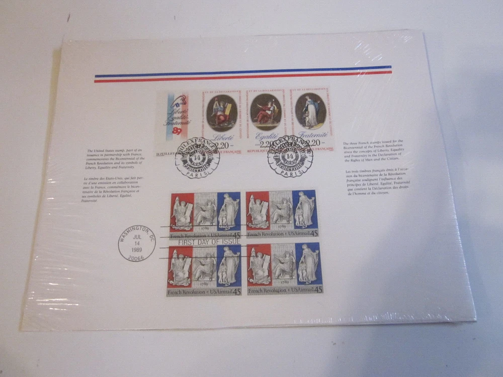 Honor the spirit of the French Revolution with this unique US FDC C120 Air Mail souvenir page. Featuring a selection of French First Day Covers, this collection captures the historical relevance of the era with a stamping that commemorates the event's bicentennial. The page is a tribute to the enduring legacy of the revolution, a must-have for philatelists and history enthusiasts alike. This item is an ungraded piece, reflecting a used quality that tells its own story. Originating from the United States with a First Day of Issue cancellation, it lacks certification but stands strong in its authenticity. The page serves as a tangible connection to the past, perfect for expanding your collection of postal history.
