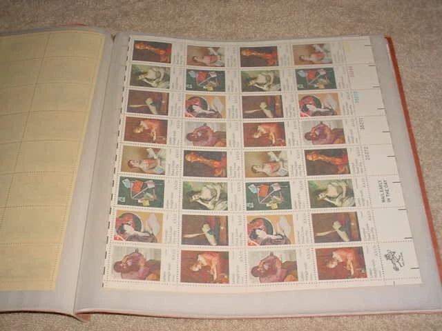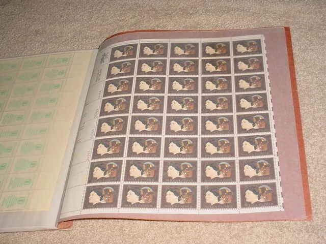U.S. FULL SHEETS OF STAMPS , 20 MNH SHEETS 1970`s - 1980 IN SOFT COVER ALBUM. SHEETS - #1345-54 + 1480-83 + 1456-59 + 1464-67 + 1530-37 + 1538-41 + 1547 + 1569-70 + 1565-68 + 1564 + 1527 + 1503 + 1506 + 1489-98 + 1487. TOTAL FACE VALUE $71.68. ALBUM AND SHEETS IN GREAT CONDITION. CATALOG VALUES TO BE DETERMINED.