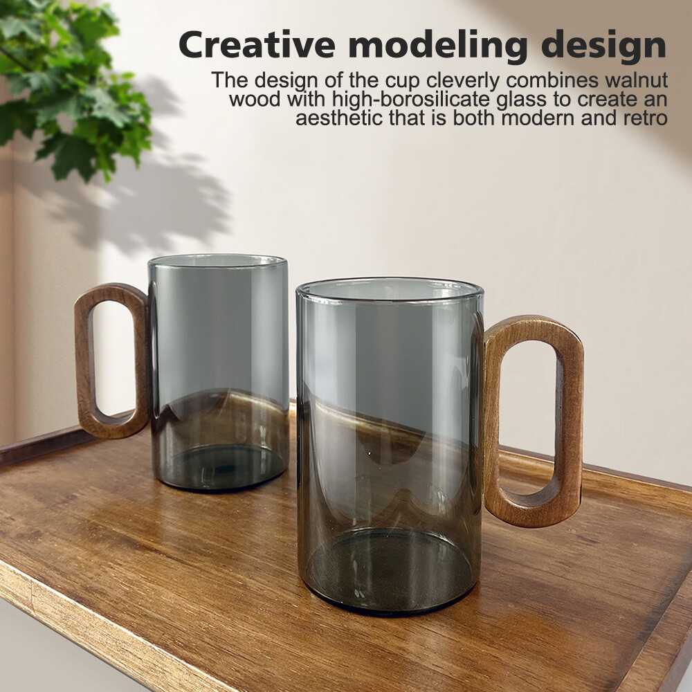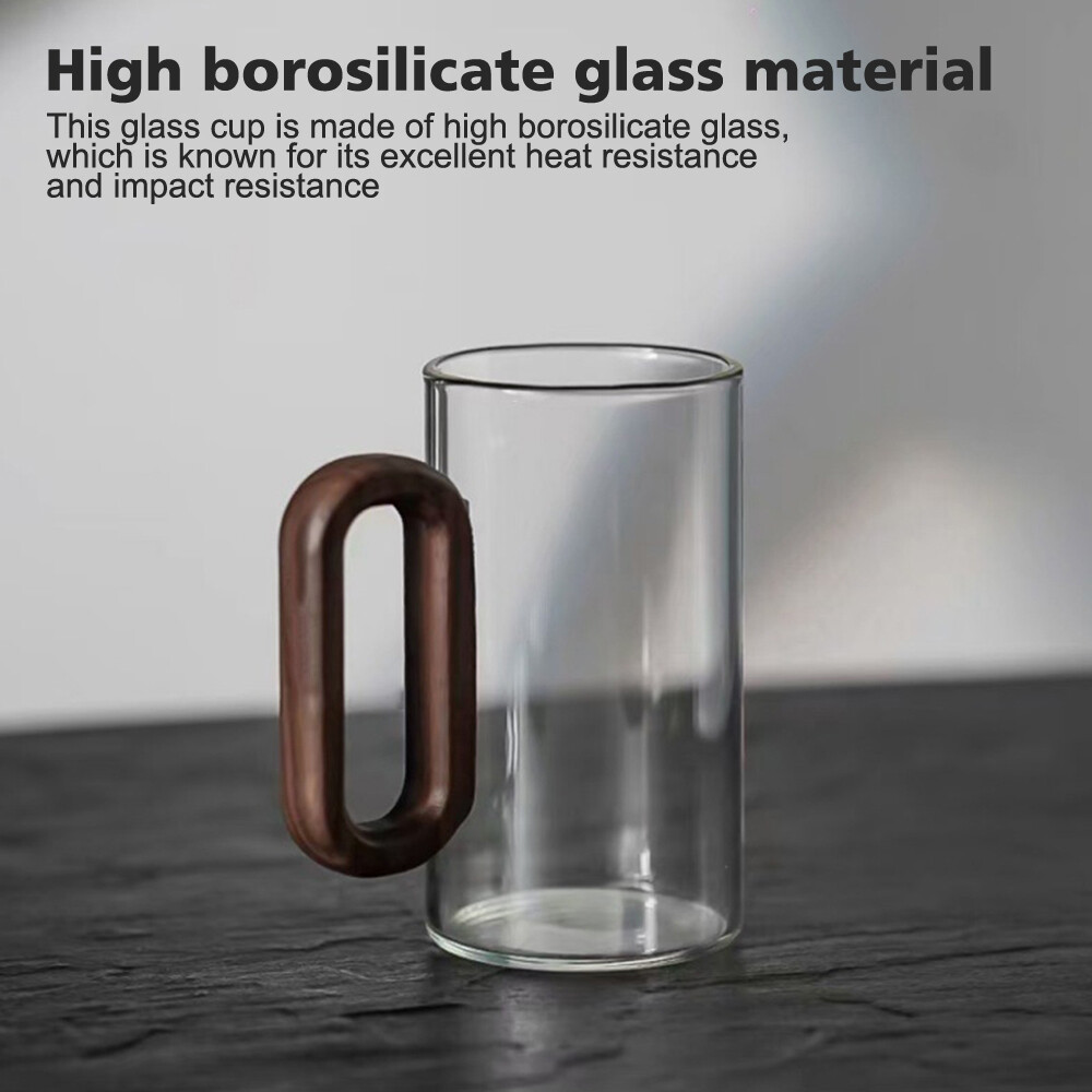 Features: 1. High borosilicate glass material: This glass cup is made of high borosilicate glass, which is known for its excellent heat resistance and impact resistance. It is not only safe and durable, but also highly transparent, crystal clear, allowing you to enjoy the drink while also appreciating its pure color. 2. Creative styling design: The cup cleverly combines walnut wood with high borosilicate glass to create a modern and retro aesthetic. This unique design not only enhances the beauty of the cup, but also makes it a fashionable decoration on your desktop. 3. Humanized leak proof design: Considering the convenience in daily life, this glass cup specially adopts a humanized design to ensure that there will be no leakage during use. Don't worry about the beverage spilling out. 4. High temperature resistance performance: The high temperature resistance of high borosilicate glass allows this glass cup to withstand high temperature environments, making it suitable for holding hot or cold drinks without worrying about cracking or deformation due to temperature changes, making use more reassuring. 5. Fashionable lifestyle atmosphere: This glass cup adds a touch of elegance to your daily life with its fashionable design and exquisite craftsmanship. It is not only a practical drinking utensil, but also a symbol of your taste in life. Whether used at home or in the office, it can demonstrate your pursuit of quality of life. Specifications: Size: 11.5 * 8 * 8cm Capacity: 350ml Function: High temperature resistance Style: Modern and minimalist Product List: 1 x glass cup On Dec 12, 2024 at 02:24:41 PST, seller added the following information: