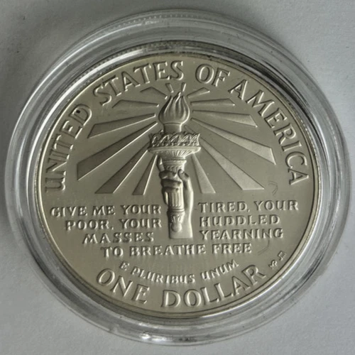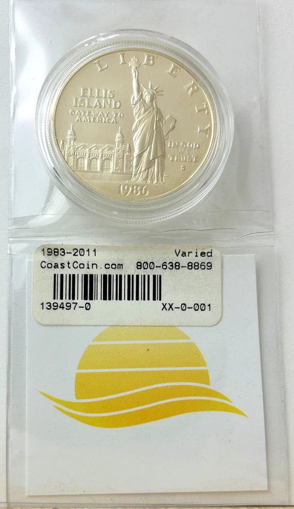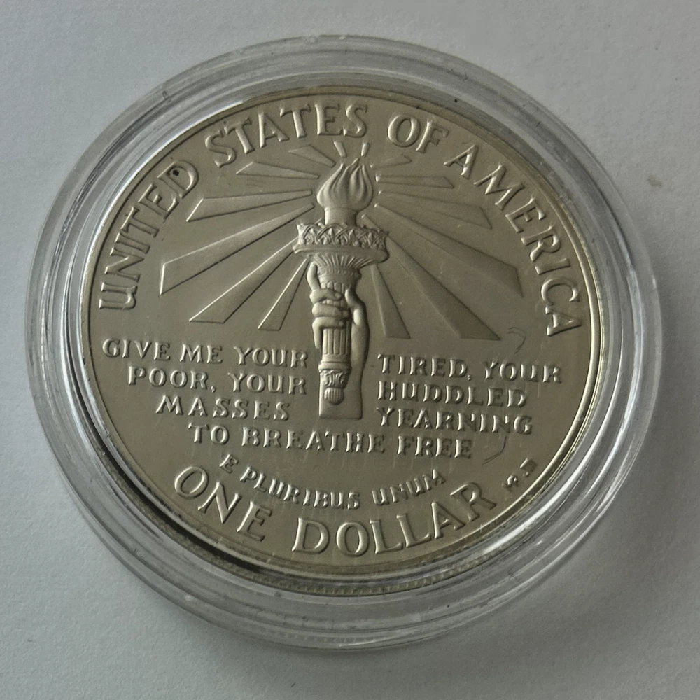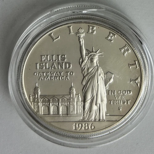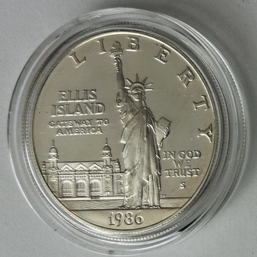*US MINT* proof silver dollar "1986-S STATUE OF LIBERTY" These photos show the actual coin you will receive as an uncirculated proof silver dollar from the United States Mint commemorating the 100th Anniversary of the Statue of Liberty on Ellis Island NY. Estate find was produced in 1986 in San Francisco of .900 silver and comes encapsulated. Please study photos for your best assessment of condition. ***Good luck and bid with confidence - genuine quality merchandise from our 60 year shop collection!***
