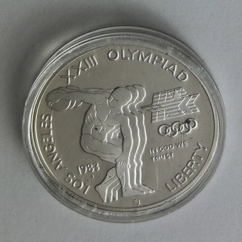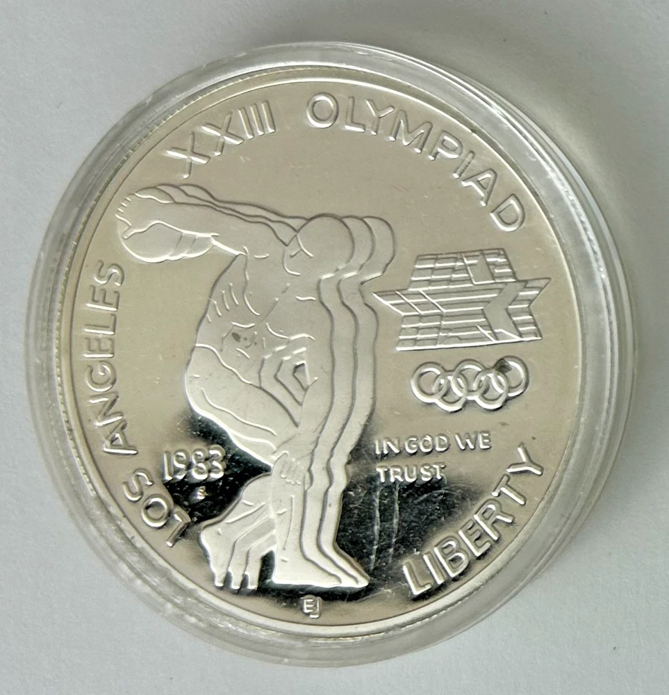 *US MINT* silver dollar "1983-S LOS ANGELES OLYMPIAD" These photos show the actual coin you will receive as an uncirculated silver dollar from the United States Mint commemorating the Olympic Games held in Los Angeles California In 1984. Estate find listed as proof was produced in 1983 in San Francisco of .900 silver and comes encapsulated. Please study photos for your best assessment of condition. ***Good luck and bid with confidence - genuine quality merchandise from our 60 year shop collection!***