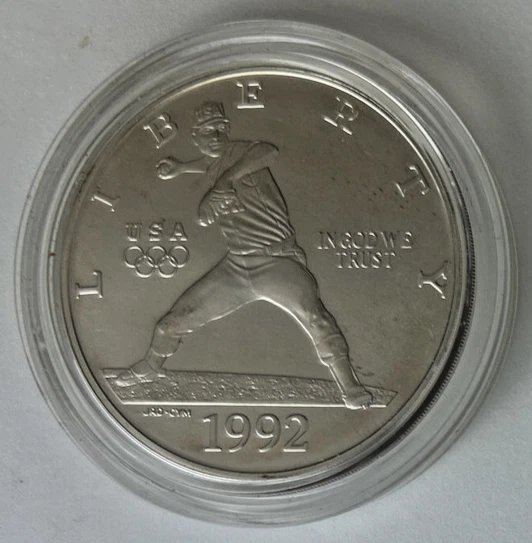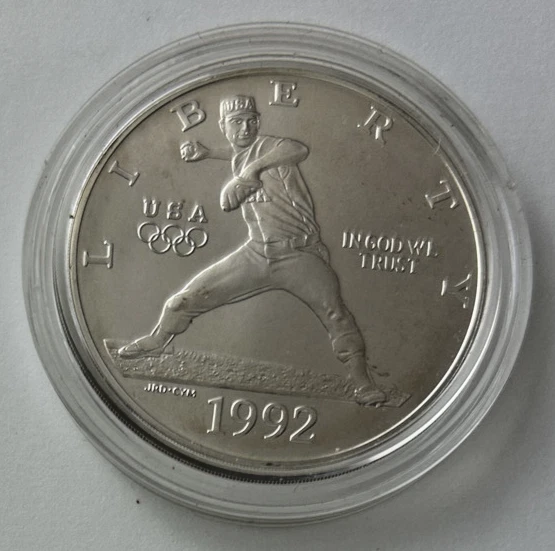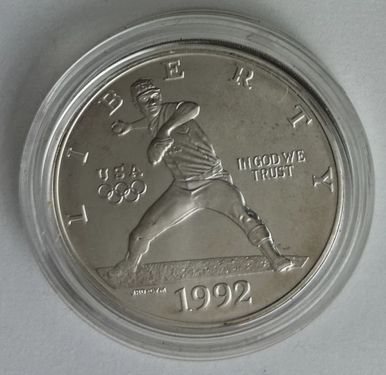 *US MINT* silver dollar "1992-D BARCELONA OLYMPIAD" These photos show the actual coin you will receive as an uncirculated silver dollar from the United States Mint commemorating the 25th Summer Olympics held in Barcelona, Spain. Estate find was produced in 1992 of .900 silver t the Denver Mint and comes encapsulated. Please study photos for your best assessment of condition. ***Good luck and bid with confidence - genuine quality merchandise from our 60 year shop collection!***