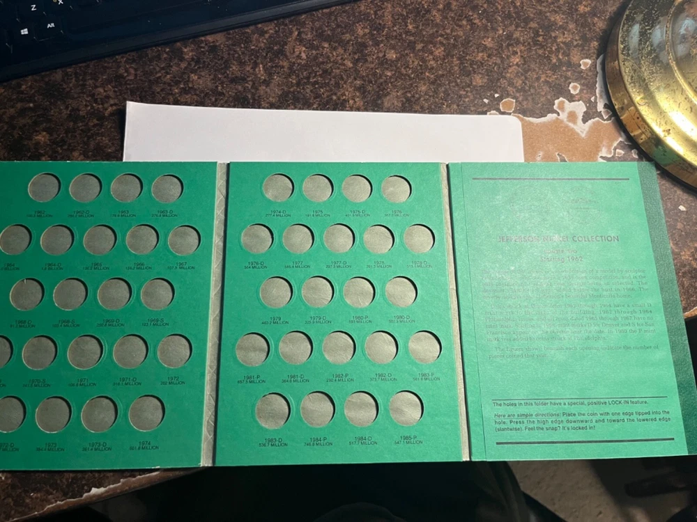 US Mint Jefferson Memorial Green Nickel Book #2 1962-1995 BOOK ONLY NO COINS AS PICTURED WAS NEVER USED. SHIPPING IS USPS WITH TRACKING