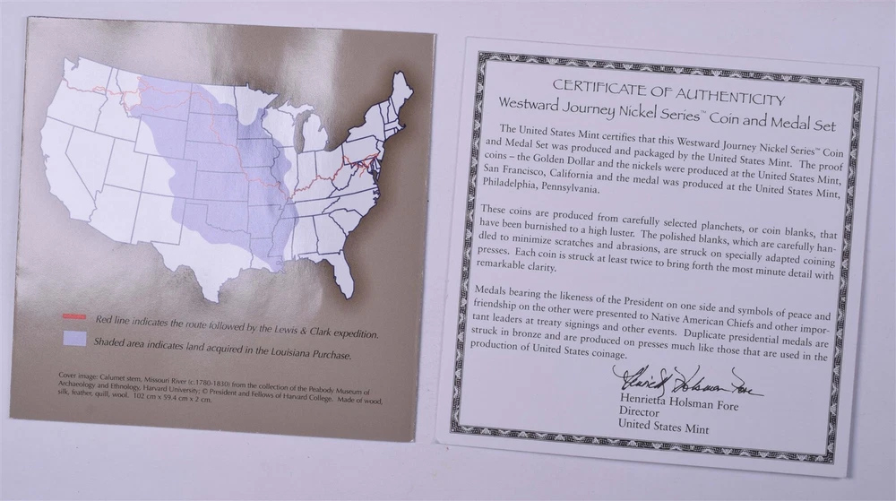 U.S. Mint Westward Journey Nickel Series 2005 Coin & Medal 2 Sets #6C3 Box & COA United States Mint Westward Journey Nickel Series, 2005 Coin & Medal Set # 6C3. 2 Sets. One of the boxes is missing the top lid, but has outer sleeve contains it. Condition: previously owned. See photos. Item in photos is the actual item you will receive, except when "STOCK PHOTOS" is noted above. Item ID: 80950 Shipping: We combine shipping for multiple item purchases - MUST BE PAID TOGETHER! PLEASE - Bid and buy at your leisure for combined shipping - we request you pay combined items within 10 days of first item won. We are unable to honor requests for combined shipping discounts if items have been paid separately. eBay does show our combined shipping on the shipping tab. If you're purchasing a large number of items, or several boxed items, request a total from seller and we'll pre-pack to get you an accurate shipping cost. We use Flat Rate mailing supplies as much as possible. FAST shipping via United States Postal Service (USPS) We ship Monday - Friday every week, excluding holidays. Most orders paid by 10AM Eastern Time on weekdays will ship same day. When your order is ready for dispatch: - Tracking will be updated on the order details - Tracking will be e-mailed to your registered eBay e-mail address - Positive feedback will be left. If you have not received tracking details or Positive Feedback within 5 days of your payment, contact us through your order details page. Insurance: Your investment is covered by third party parcel insurance and/or U.S. Postal Service Insurance. By bidding/buying, you agree to cooperate with the insurance claims process on lost, stolen, or damaged shipments. If you would like details on the claims process before bidding, feel free to e-mail us. Tax: eBay collects and administers the Sales Tax on a per-state basis. We have no control over the administration of tax. Requests for refunds of Sales Tax will not be honored. If you feel an exemption is warranted, we can only recommend you contact eBay directly. Returns: We accept returns for refund on all unaltered items within 30 days. - Coins removed from their packaging are non returnable. - Items sold as sealed or unopened are non returnable if opened. - We do not charge a restocking fee nor do we refund postage charges. All returns must be handled through eBay's automated return process. No returns on items marked FINAL SALE or AS-IS.