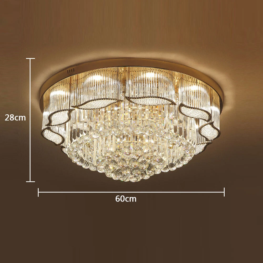 US Modern Crystal LED Ceiling Light Chandelier Flush Mount Lamp Lighting Fixture Key Words: Modern Crystal LED Ceiling Light Chandelier Lamp Flush Mount Lighting Fixture Product Description: Ceiling Type: Crystal Ceiling Lamp / Chandelier Diameter: 60cm Shade auxiliary material: Crystal Light Body auxiliary materials: ABS + Metal chassis Shade main material: Crystal LED Bulbs Type: E14 *2 Base Light source type: Incandescent LED energy-saving lamps(Not included) 3 Light Color Mode: White, Warm Yellow Light and Neutral Light Switch Type: Remote Control Technology: Electroplating An irradiation area: 15 square meters-30 m Voltage: 110V Power: 31W (including) -40W (inclusive) Application of space: Living room, Dining room, Bedroom, Other small bedroom and small living room Package: 1x Crystal Chandelier (Bulb not included) Payment Delivery details Terms of sales About us Contact us Payment We accept ebay payment 。 Fees such as import duties, taxes are not included in the item price or shipping costs. These charges are the buyer's responsibility. Delivery details Shipping: 2-9 working days to: USA Terms of sales We maintain high standards of excellence and strive for hundred percent customer satisfaction. Feedback is very important to us. We hope that you contact us immediately before you give neutral or negative feedback, so that we can address your concerns. It is impossible to address issues if we do not know about them! About us Your satis faction is our ultimate goal. We work hard to earn your trust and future business. Our certified technicians have tested each item before shipping. The unit comes with 1 year limited warranty on all manufacturing defects. a) If you receive a defective item, you may return it or ask for a discount. Please contact us within 14 days after you receive the package. b) What you returned must be intact and in its original packaging as re? u. Customer is responsible for shipping costs of the returned item. c) We will cover the cost of shipping back t with the shipping rate indicated in the registration page. We will send you a new unit or refund the full payment you paid. Thank you. Contact us Business Hour Business Hour: Monday To Friday: 8:30 AM to 5:00 PM (Beijing China time) Due to time zones, our reply to your questions may not be immediately. But within above working time, we will reply your email within 24 hours. If it's non-workdays, please kindly be patient and wait till Monday. Please contact us with ebay message. Please feel free to contact us if you have any questions. Monday To Friday: 8:30 AM to 5:00 PM (Beijing China time) Due to time zones, our reply to your questions may not be immediately. But within above working time, we will reply your email within 24 hours. If it's non-workdays, please kindly be patient and wait till Monday. Please contact us with ebay message. Please feel free to contact us if you have any questions.