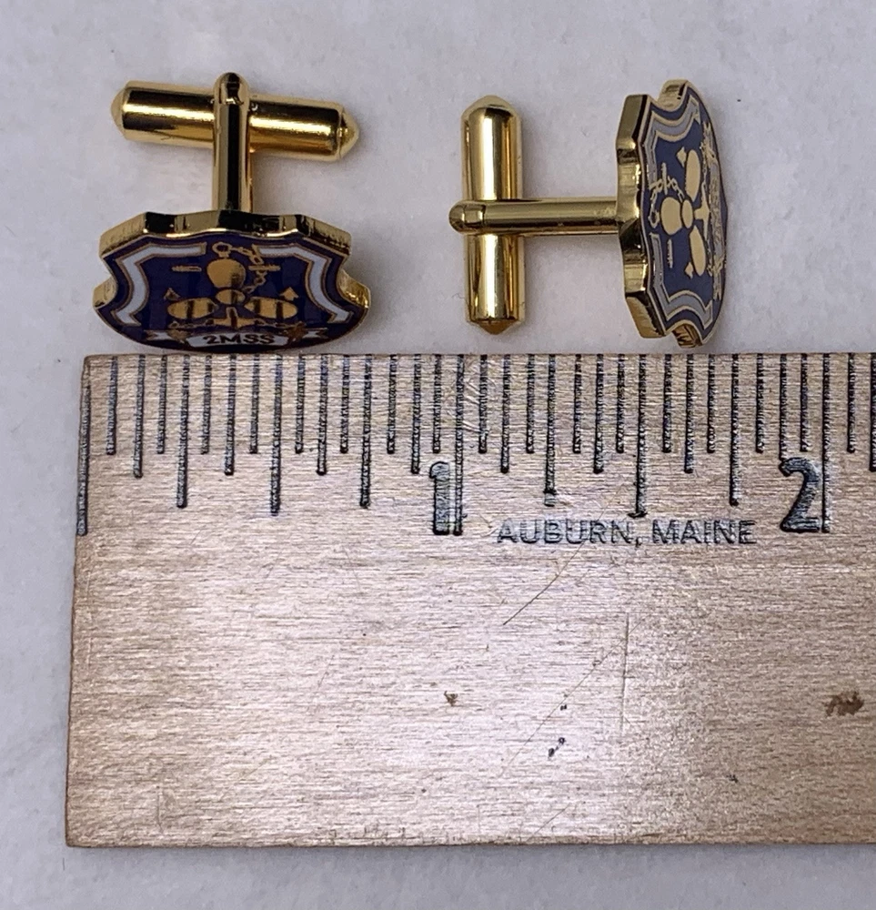 The product is a set of 2MSS US Navy cuff links and a tie bar clip, designed as military-themed collectibles. The 2MSS stands for Machinist’s Mate Submarines, Second Class. The cuff links and tie bar clip are crafted as medals, representing the United States Navy. These accessories are perfect for individuals who have served in the Navy or have a deep appreciation for naval militaria. These are a symbol of pride and honor for those connected to the United States Navy. Used Please see pictures details