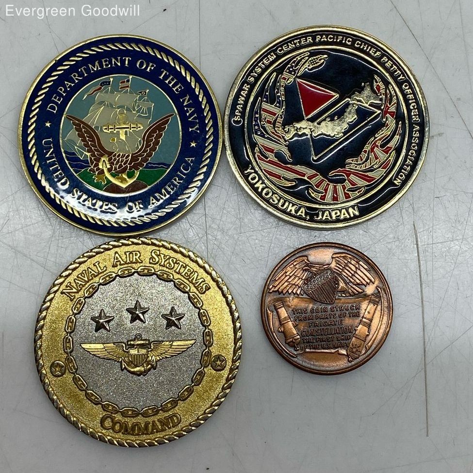 Unbranded Us Navy Challenge/commemorative Token Coins Brand: Unbranded Type: Us Navy Challenge/commemorative Token Coins Condition: Good - shows some sign of wear Evergreen Goodwill helps people get jobs across Northwest Washington by offering high-quality free job training, education and job placement. We empower individuals to overcome barriers to working by providing comprehensive support and connecting them with life-changing job opportunities, ensuring they are career-ready and can support themselves and their families. ***Disclaimer*** All items were donated to Evergreen Goodwill of Northwest Washington with no history or provenance. The auction is for all items pictured. Items may need servicing and/or benefit from a cleaning upon arrival. Please see photos for additional details and feel free to ask questions. PAYMENTS Please note that your entire order will be canceled by eBay if the oldest item exceeds 7 days without payment. Once an order is canceled, we are unable to re-invoice and the item will be relisted. For a combined shipping invoice, please send us one request within 3 days of winning the first item to avoid cancelation of your entire order. Once a combined invoice has been sent, we are unable to add additional items to the invoice. SHIPPING Local pickup only available to items listed as Local Pickup at this time. Interntaional shipping is not available at this time. We offer combined shipping as long as items will ship safely together. Auctions must end within 5 days of each other to be eligible for combined shipping. Please hold off on payment until all auctions have ended then proceed to checkout. Please do not pay for any items individually if you wish to have them combined - they must be paid at the same time. Items listed for flat-rate shipping are not eligible for combined shipping. PO Box addresses will require USPS shipments as FedEx Ground will not deliver. If FedEx is selected we may need to invoice for additional shipping costs.