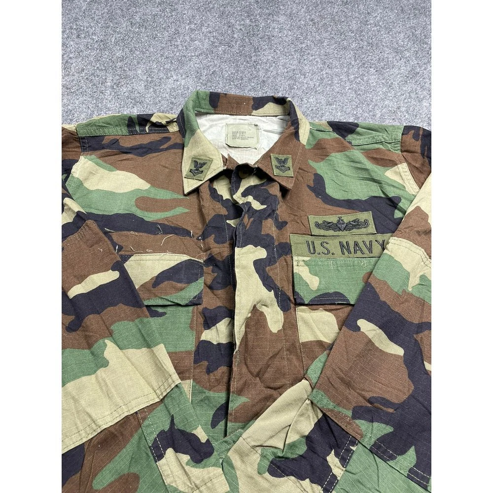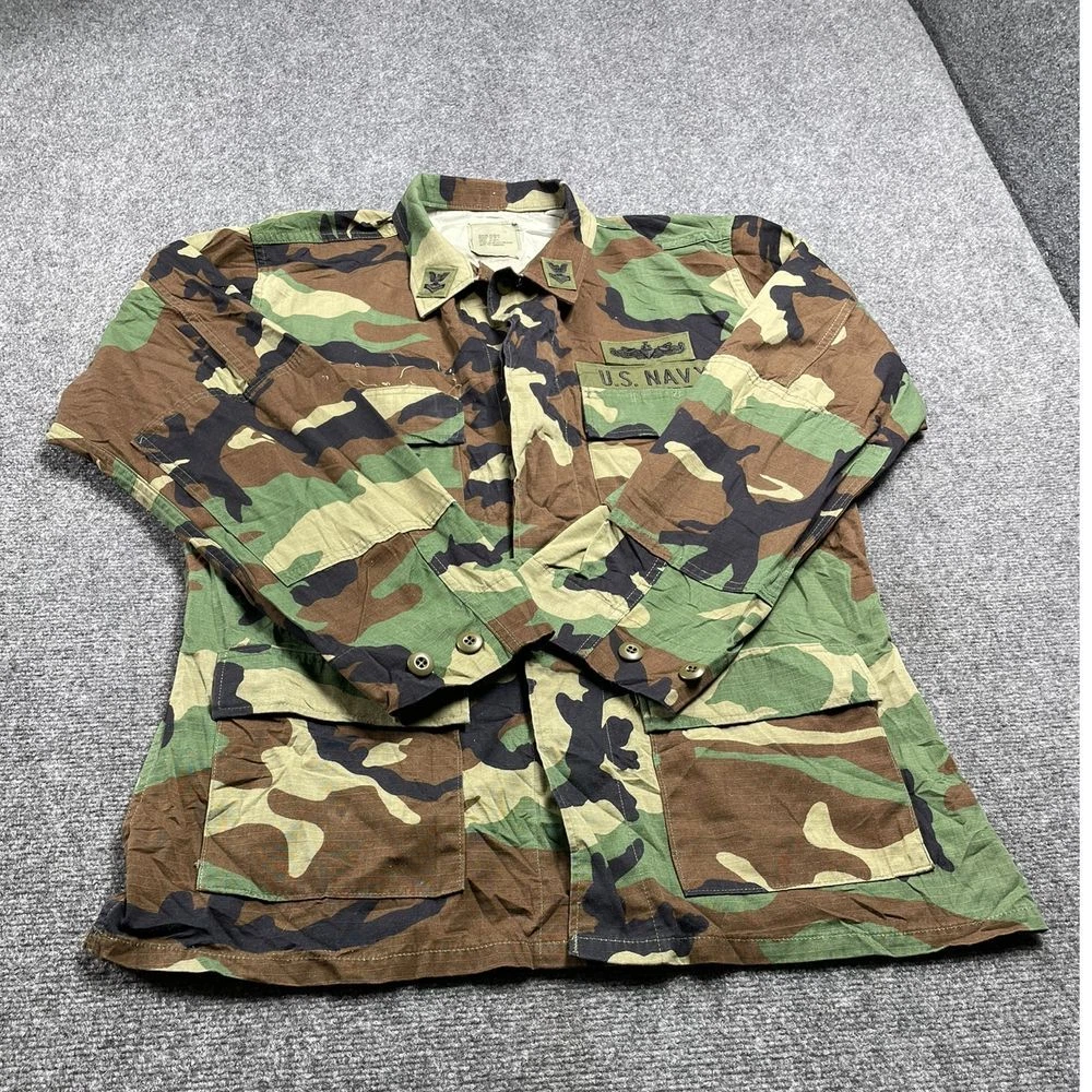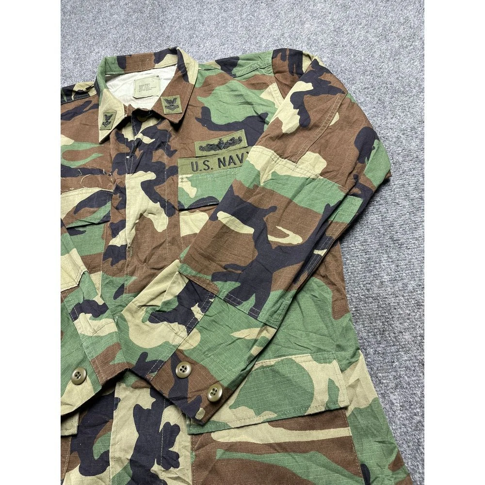 US Navy Men's Green Camouflage Working Uniform Jacket Size M Product Detail • Brand: Unbranded • Type: Jacket • Color: Green • Condition: This US Navy men's green camouflage working uniform jacket in size M is in good pre-owned condition. Some light wear is present, but no significant stains, tears, or damage. Clean and intact. PLEASE NOTE: Please review the pictures before making a purchase. We value your business and encourage you to send a message if you have any issues or concerns I answer most questions instantly! Thank you!