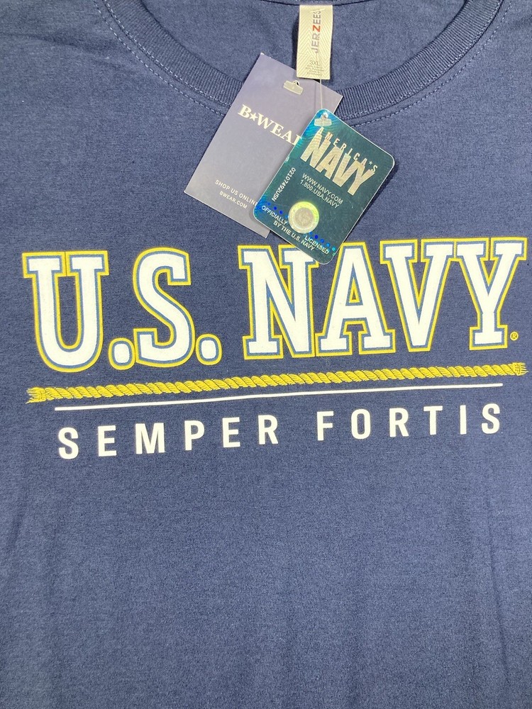 For sale: U.S. Navy T-Shirt Adult 3XL Blue Short Sleeve Semper Fortis Military Jerzees Please check photos carefully for details/measurements. Measure your favorite garment and compare. This item may be wrinkled upon arrival due to packaging. We welcome questions and offers! Thank you for taking time to view and consider this item!