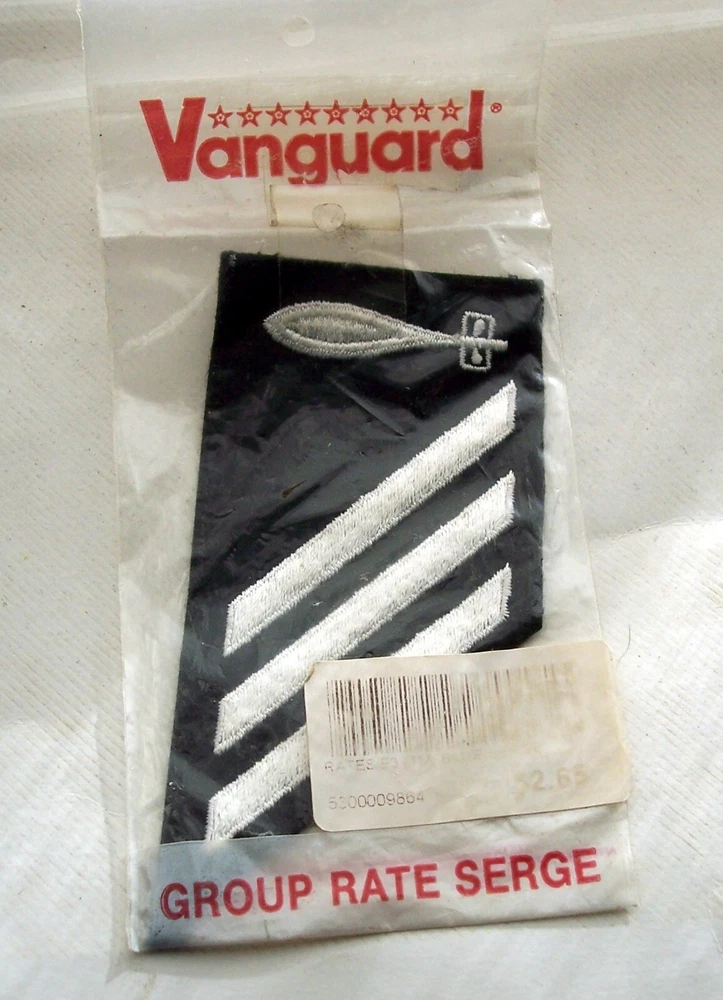 US Navy Torpedoman's Seaman Rate Patch in vanguard packaging. Clean, unsewn condition. Vintage unknown. No glow under UV light