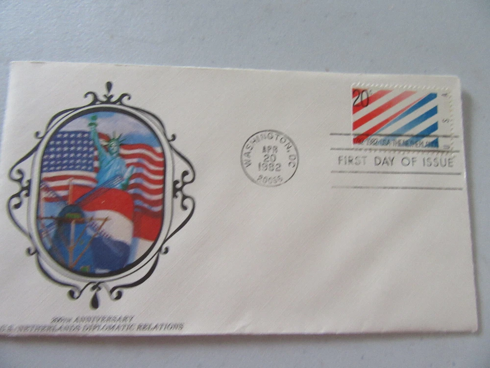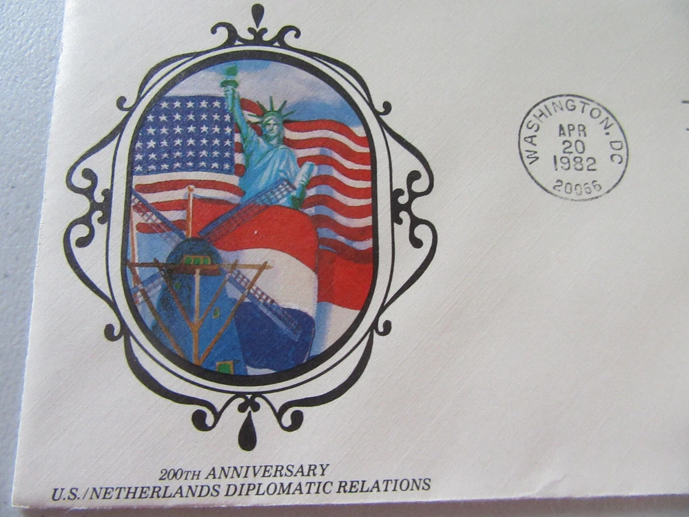 Patriotic 200th Anniversary of United States & Netherlands Diplomatic Relations (1782-1982) 20c Stamp Fdc Sc#2003 By New Drexions Covers Issued April 20, 1982. ~~~FREE SHIPPING~~~