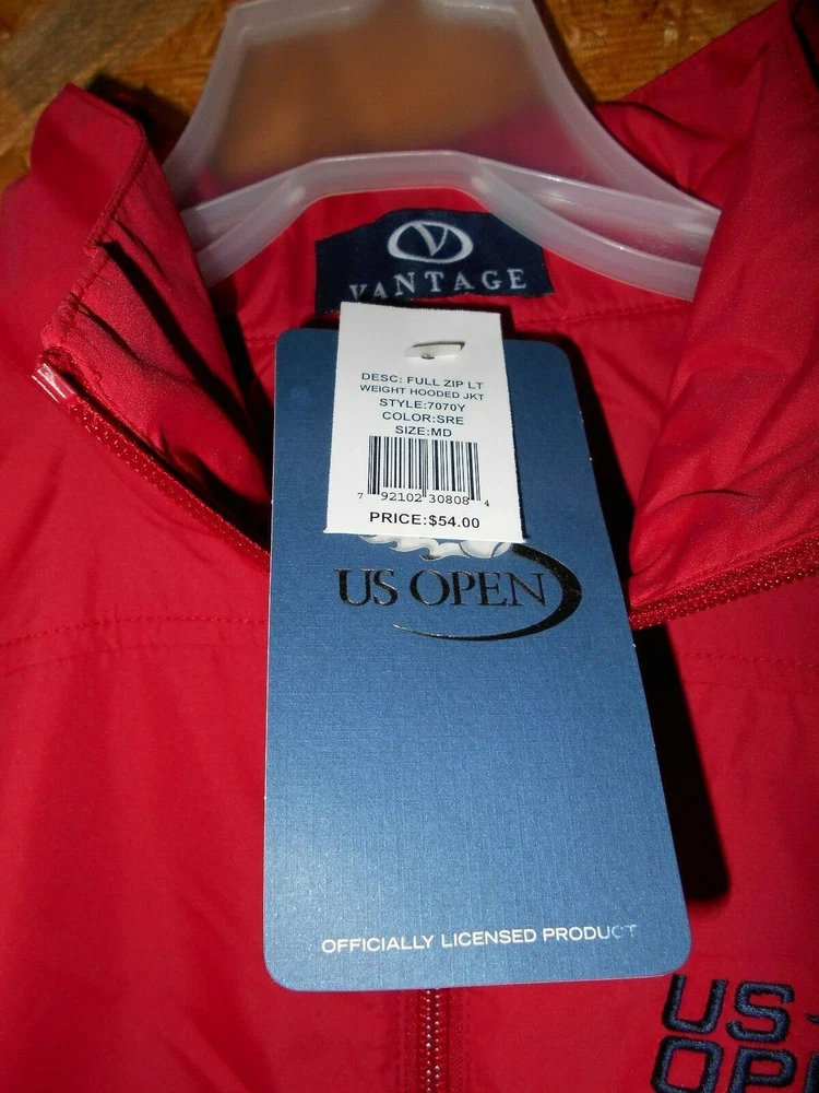 US OPEN Full Zip LT Weight Hooded Jacket style 7070Y youth medium 8/10 officially licensed product new with tags Red (on tag SRE) MSRP" $54.00