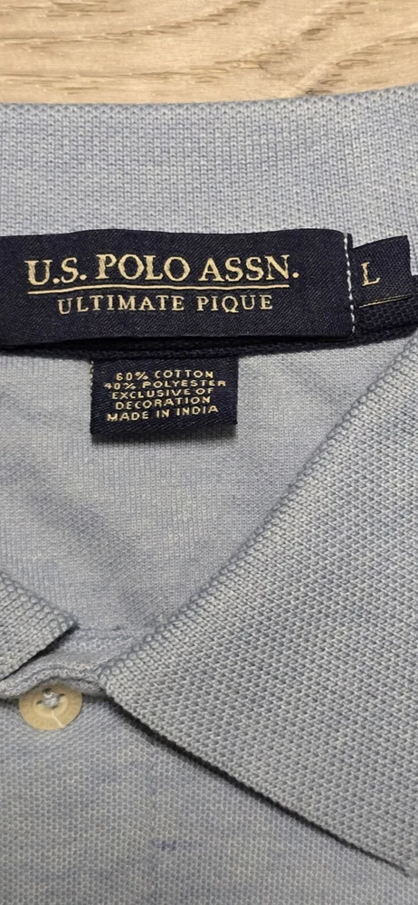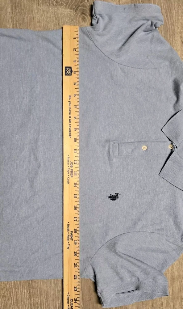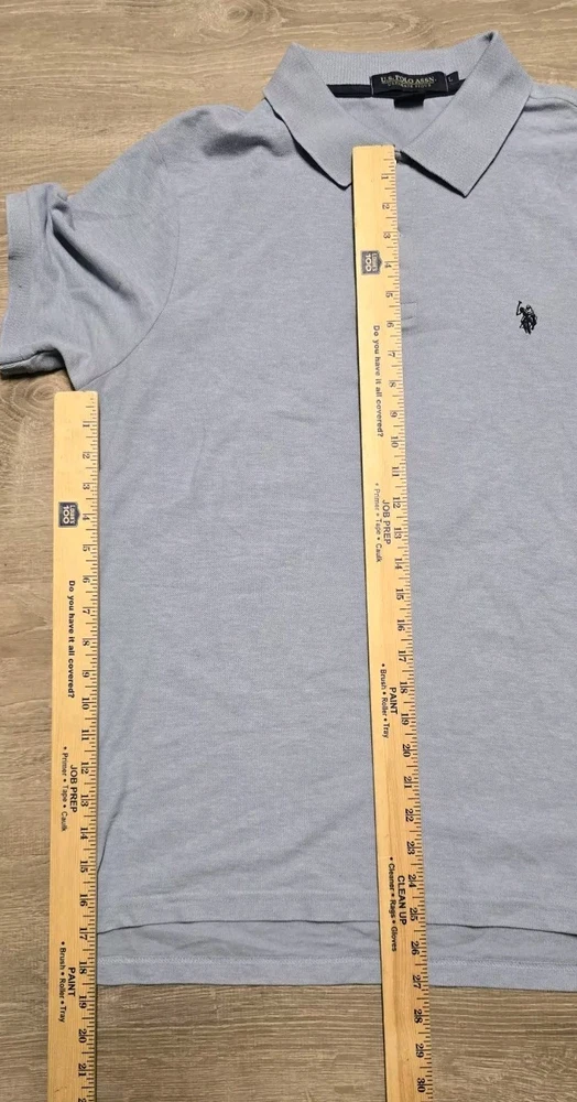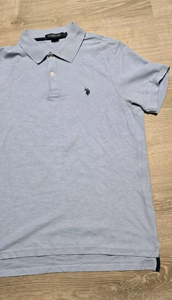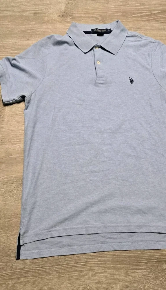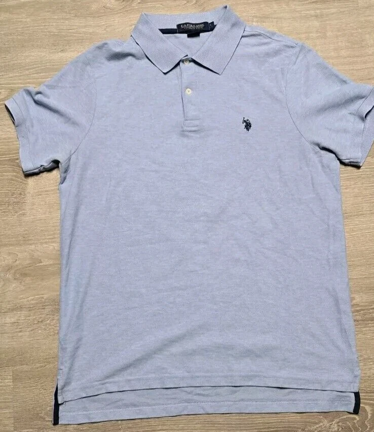 Elevate your casual wardrobe with this U.S. Polo Assn. polo shirt. The shirt features a solid blue color, short sleeves, and a collared neckline. It is made of a blend of polyester and cotton fabric, which makes it comfortable and machine washable. The shirt has an embroidered logo on the chest and is a regular fit for men in size large. This polo shirt is perfect for casual occasions, and its medium fabric wash adds to its classic look. The shirt is a must-have for any fashion-conscious man, and its timeless design ensures that it will always be in style. Get your hands on this high-quality shirt today and add it to your wardrobe. BB